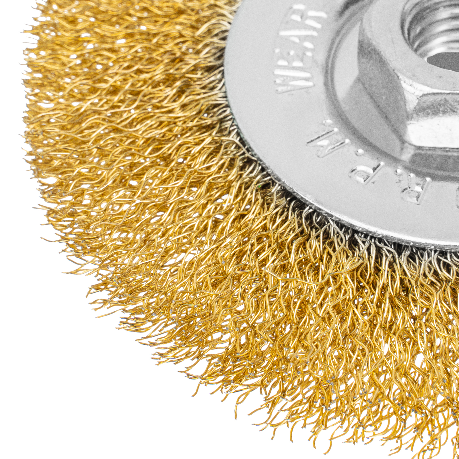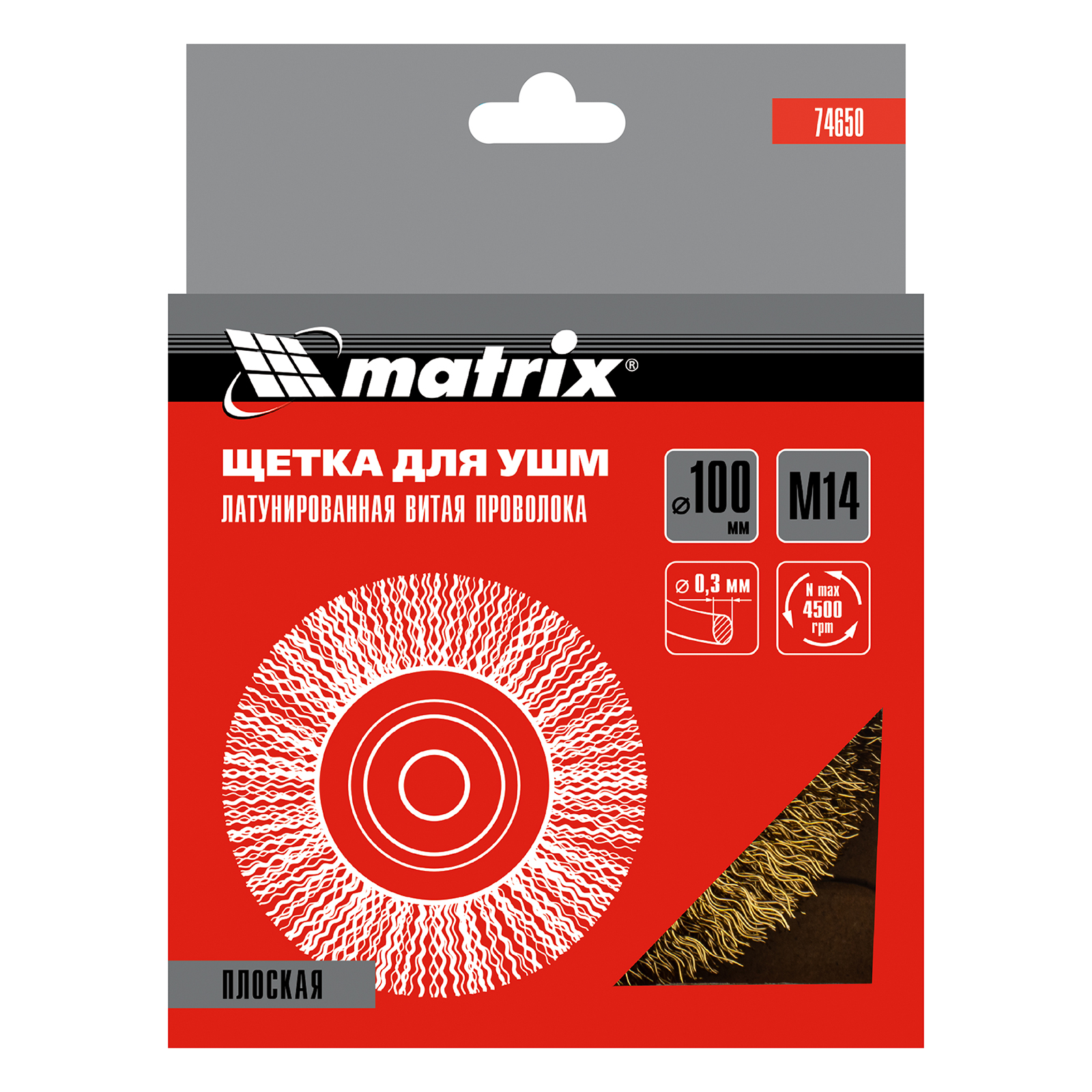 Щетка для УШМ, 100 мм, М14, плоская, латунированная витая проволока Matrix в Челябинске