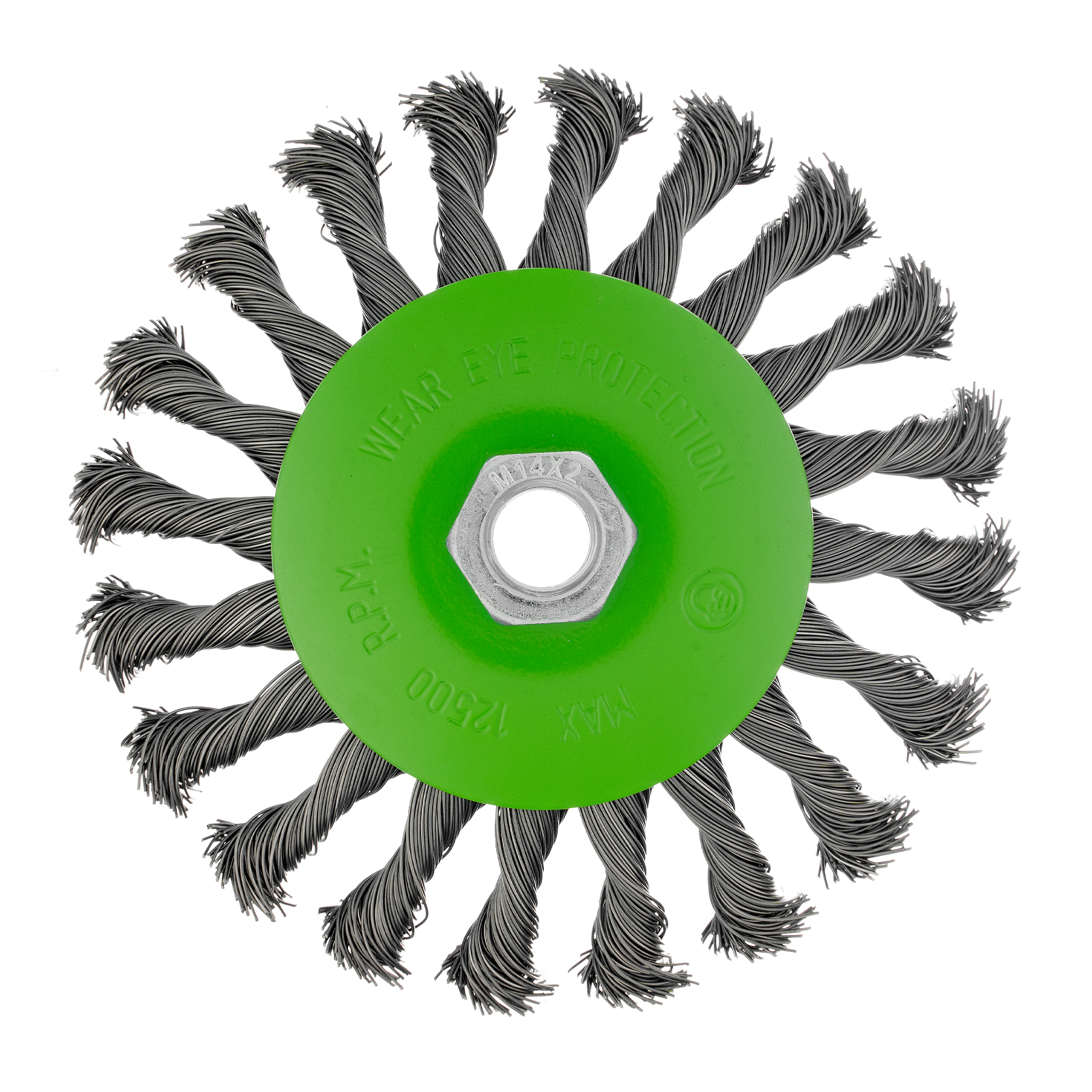 Щетка Сибртех «тарелка» 746117 диаметром 125 мм, с щетиной из крученой проволоки толщиной 0,5 мм, устанавливается на УШМ при помощи гайки М14. Выполнена в форме тарелки, за счет чего подходит для грубой (черновой) обработки плоских и угловых поверхностей. Удаляет ржавчину, загрязнения, лакокрасочные покрытия, подходит для зачистки сварных швов. Использование на скорости до 12500 об/мин позволяет продлить срок службы насадки.