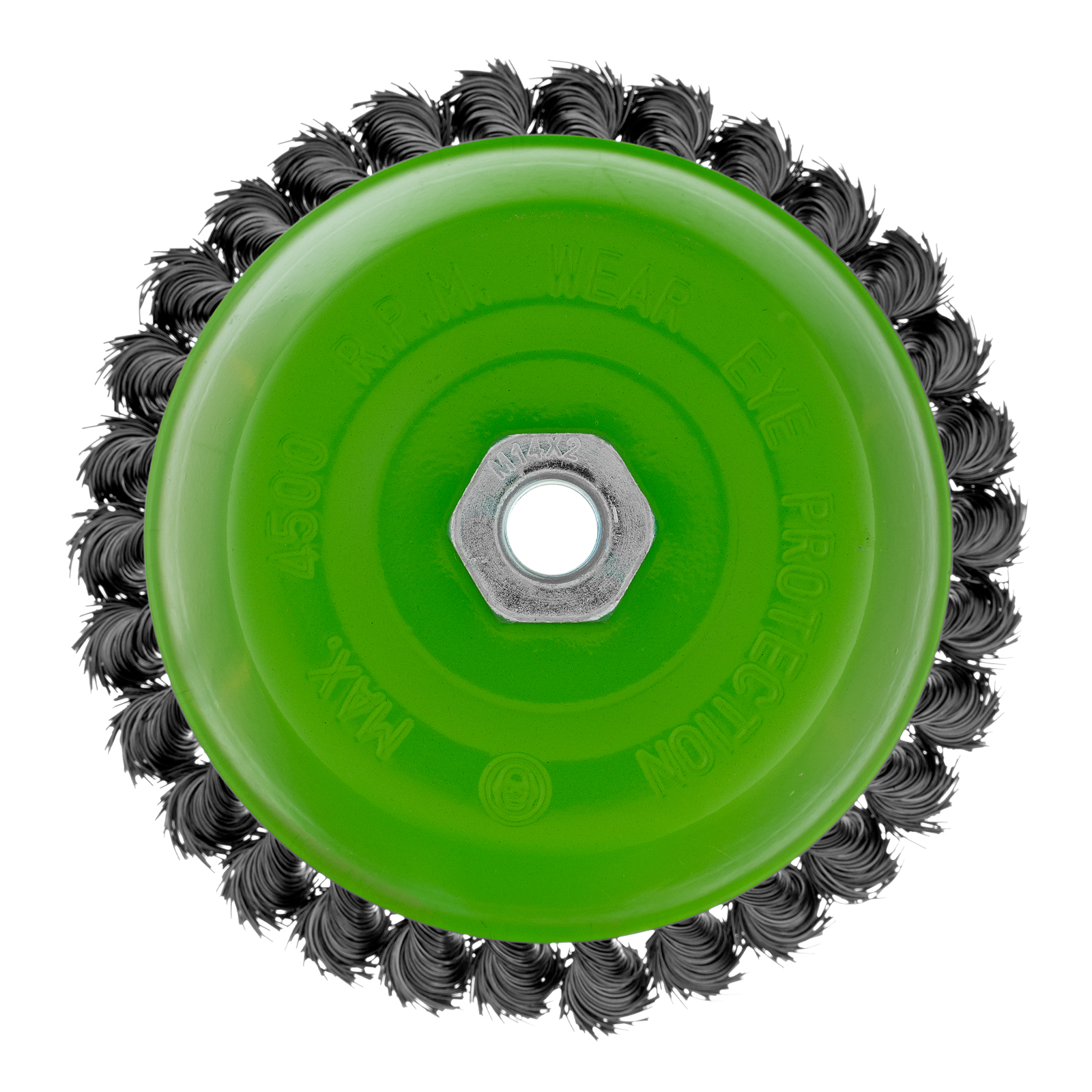 Щетка Сибртех «Чашка» 746297 диаметром 150 мм, с присоединительной резьбой М14, с щетиной из крученой проволоки диаметром 0,5 мм, устанавливается на УШМ, поддерживающую работу со скоростью 4500 об/мин. Изделие предназначено для грубой (черновой) обработки поверхностей и подходит для удаления загрязнений, снятия толстого слоя ржавчины, ЛКМ, зачистки сварных швов.