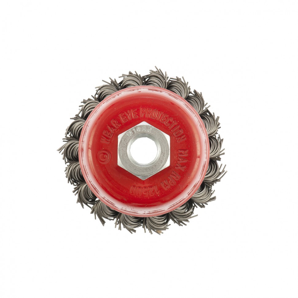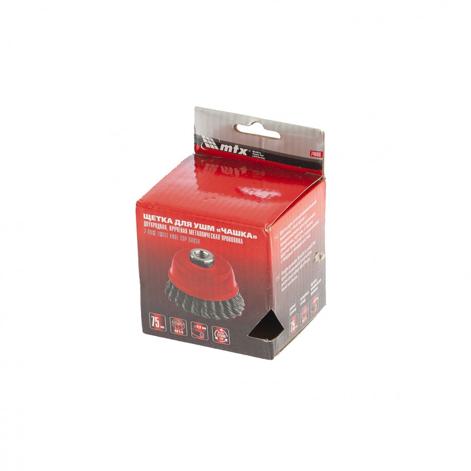 Двухрядная щетка Matrix «Чашка» 74686 диаметром 75 мм, с щетиной из крученой проволоки толщиной 0,8 мм, устанавливается на вал углошлифовальной машины с помощью гайки М14. Рекомендованная максимальная скорость вращения — до 12500 об/мин. Оснастка оптимальна для грубой (черновой) обработки: снятия старого слоя лакокрасочного покрытия и ржавчины, удаления загрязнений, зачистки сварных швов. Эффективно справляется с зачисткой больших поверхностей, подходит для выполнения работ повышенной сложности.