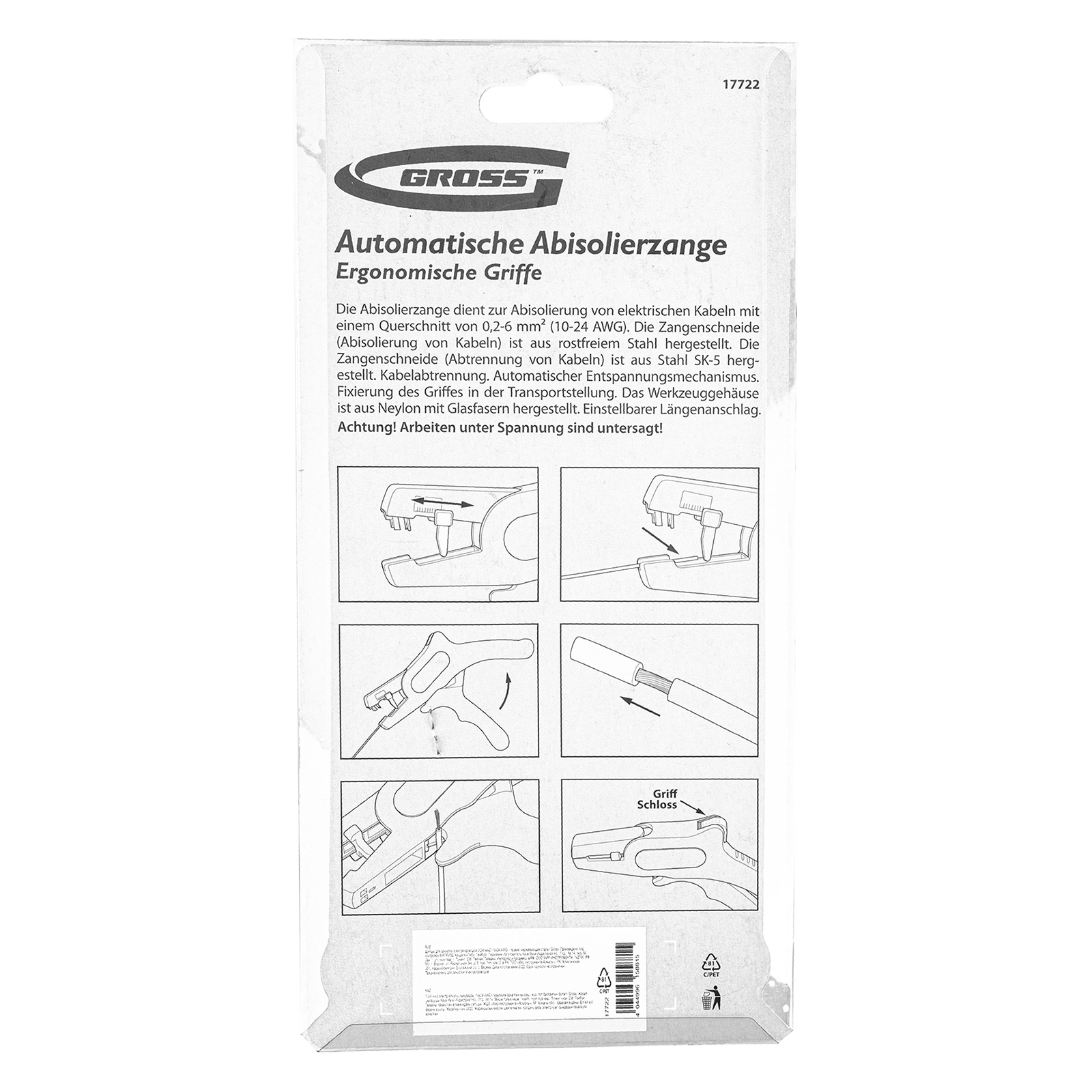 Щипцы для зачистки электропроводов 0.2-6 мм2 (10-24 AWG) лезвие: нержавеющая сталь Gross в Челябинске