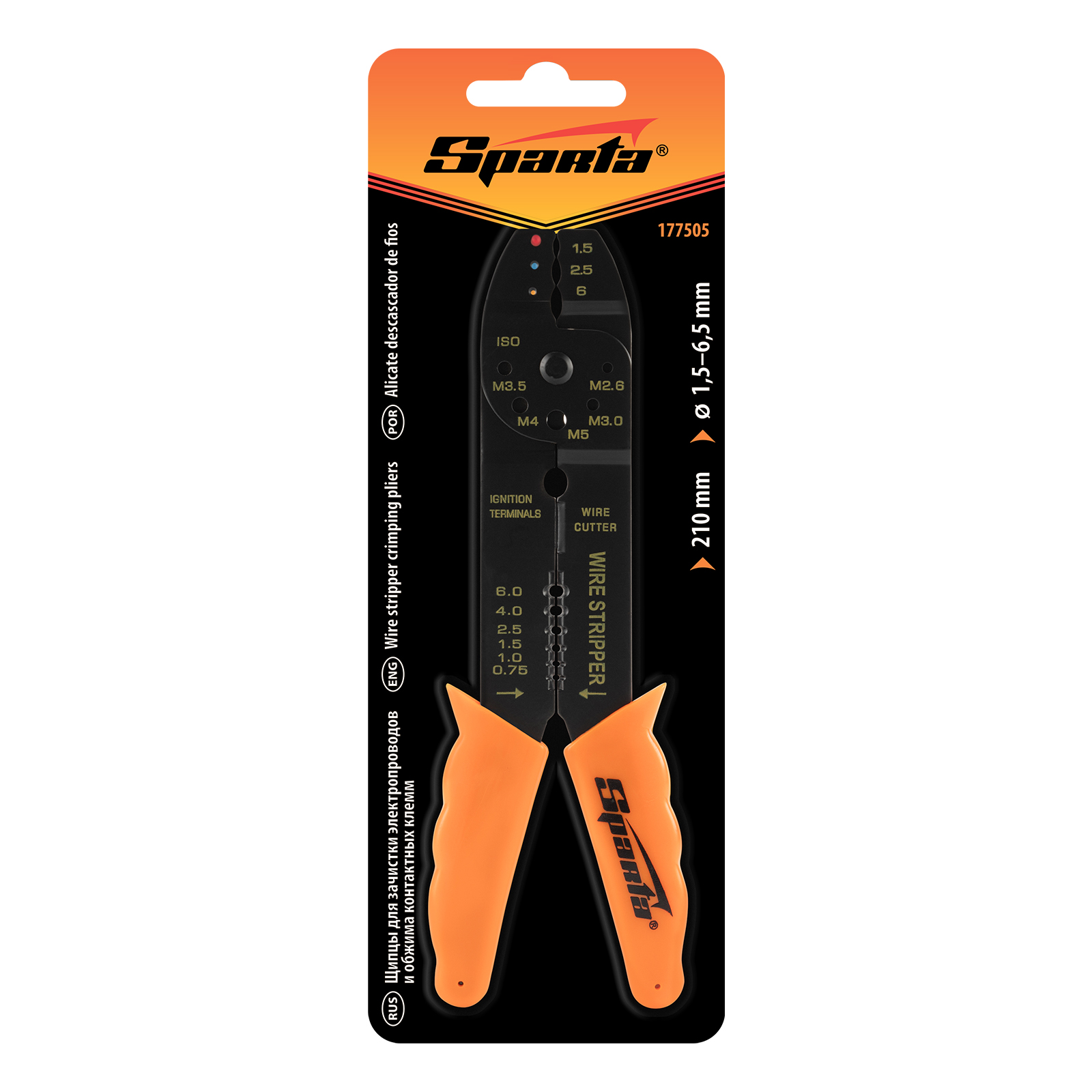 Щипцы, 210 мм, для зачистки электропроводов и обжима контактных кле мм, 1.5-6.5 мм Sparta в Челябинске