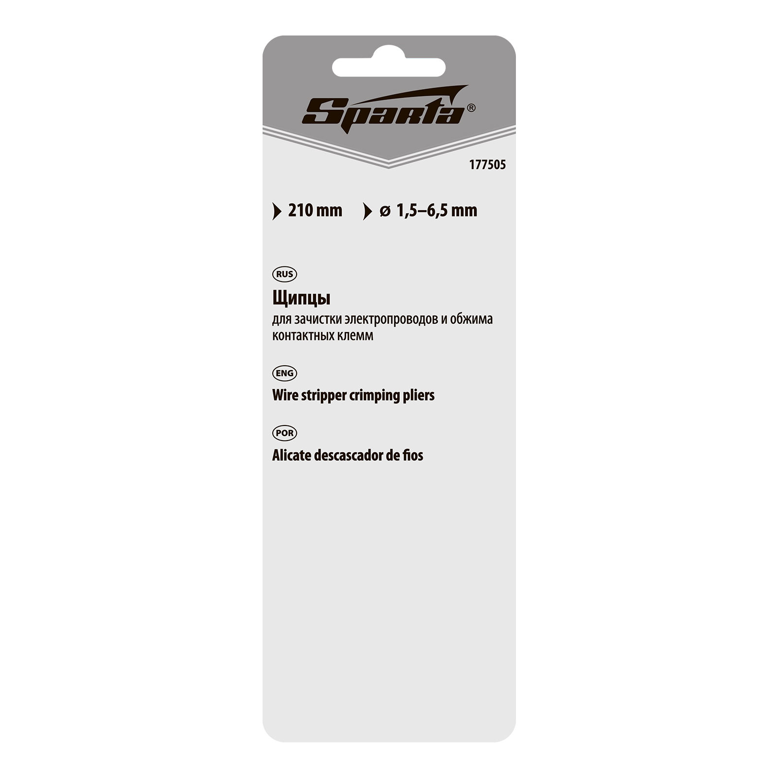 Щипцы Sparta 177505 длиной 210 мм, применяются для зачистки и снятия мягкой изоляции с электропроводов 1,5-6,5 мм, а также для обжима контактных клемм. Они подходят для непрофессионального использования при осуществлении электромонтажных работ.