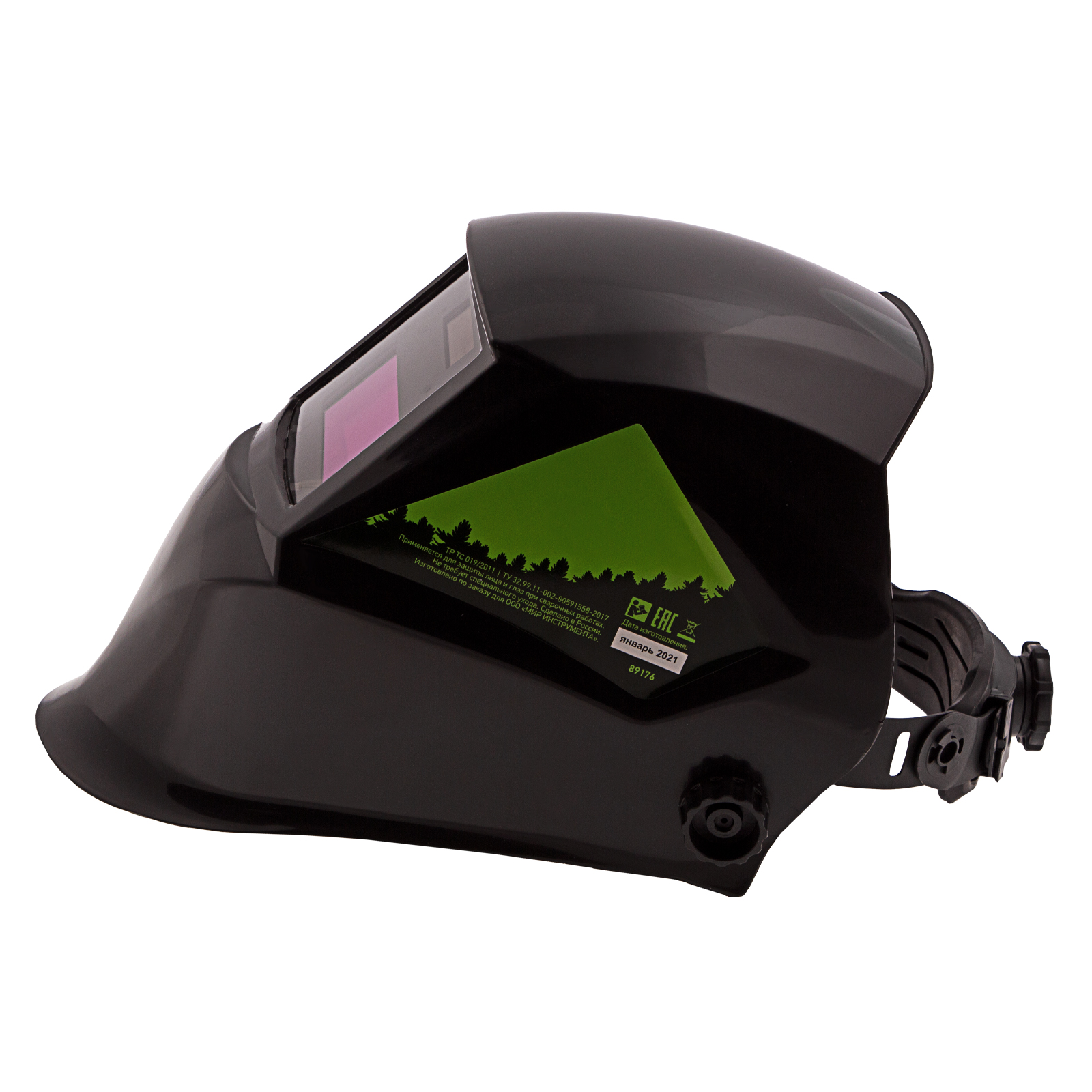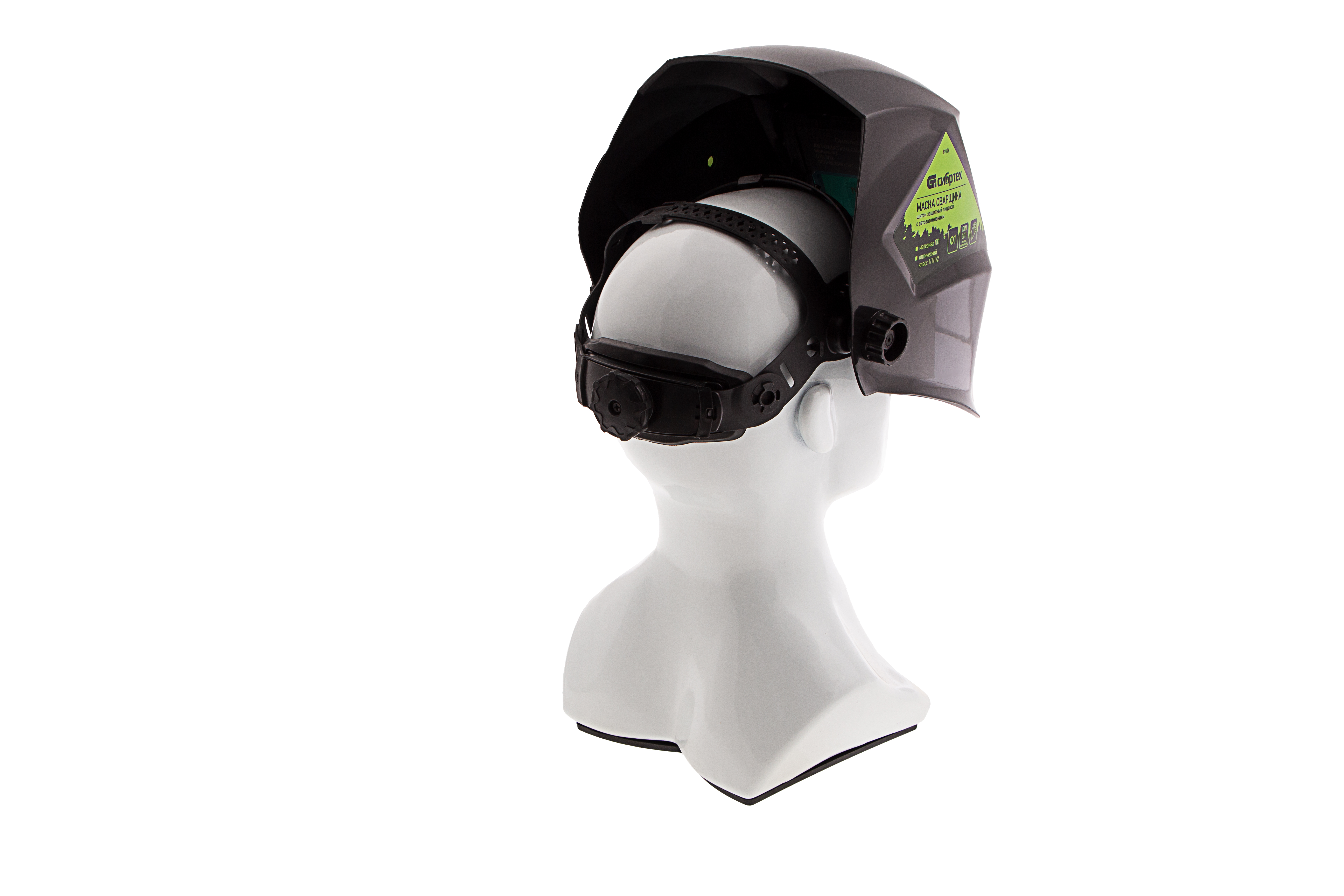 - Удобная посадка на голове — регулируемое оголовье позволяет надежно зафиксировать щиток, чтобы он не спадал во время работы.