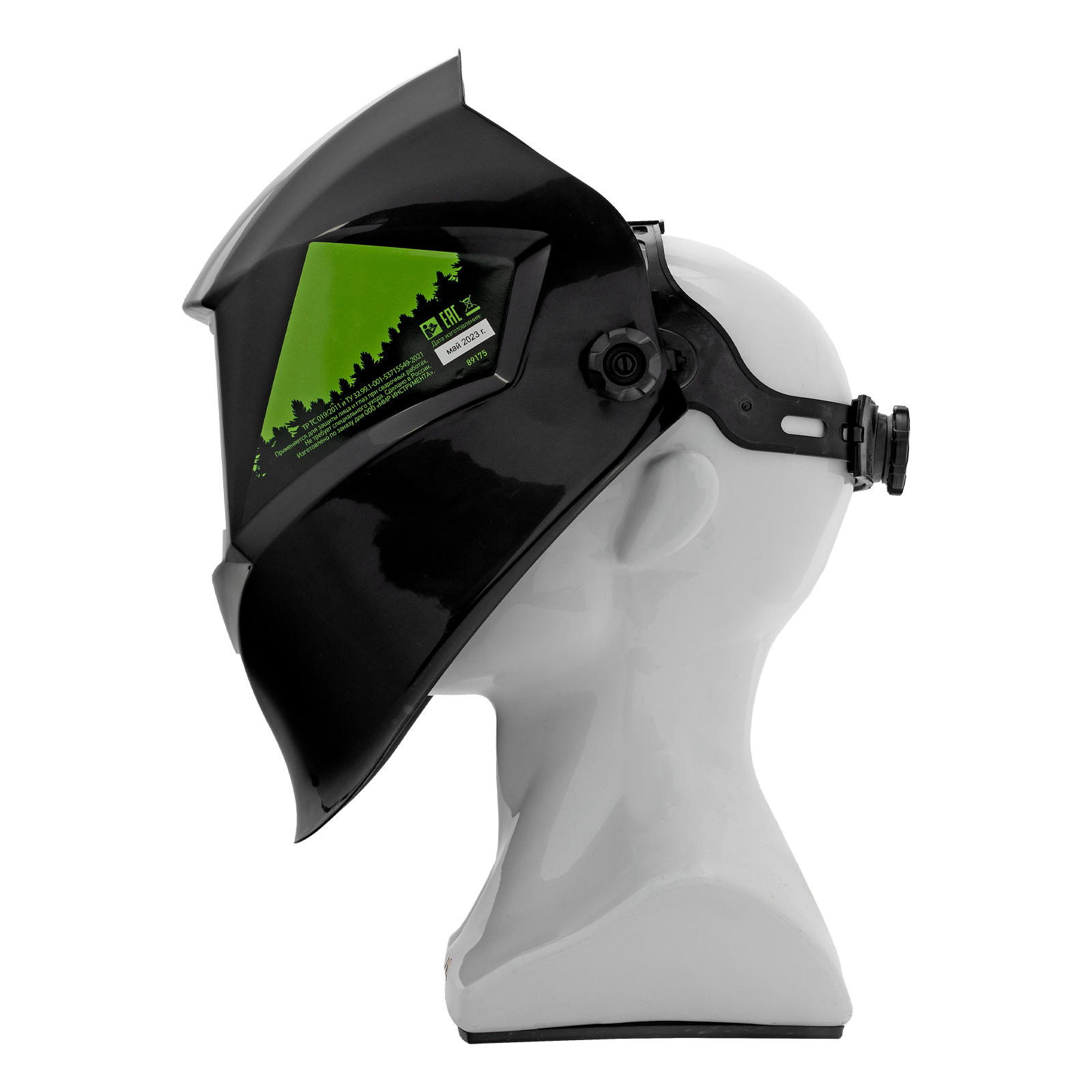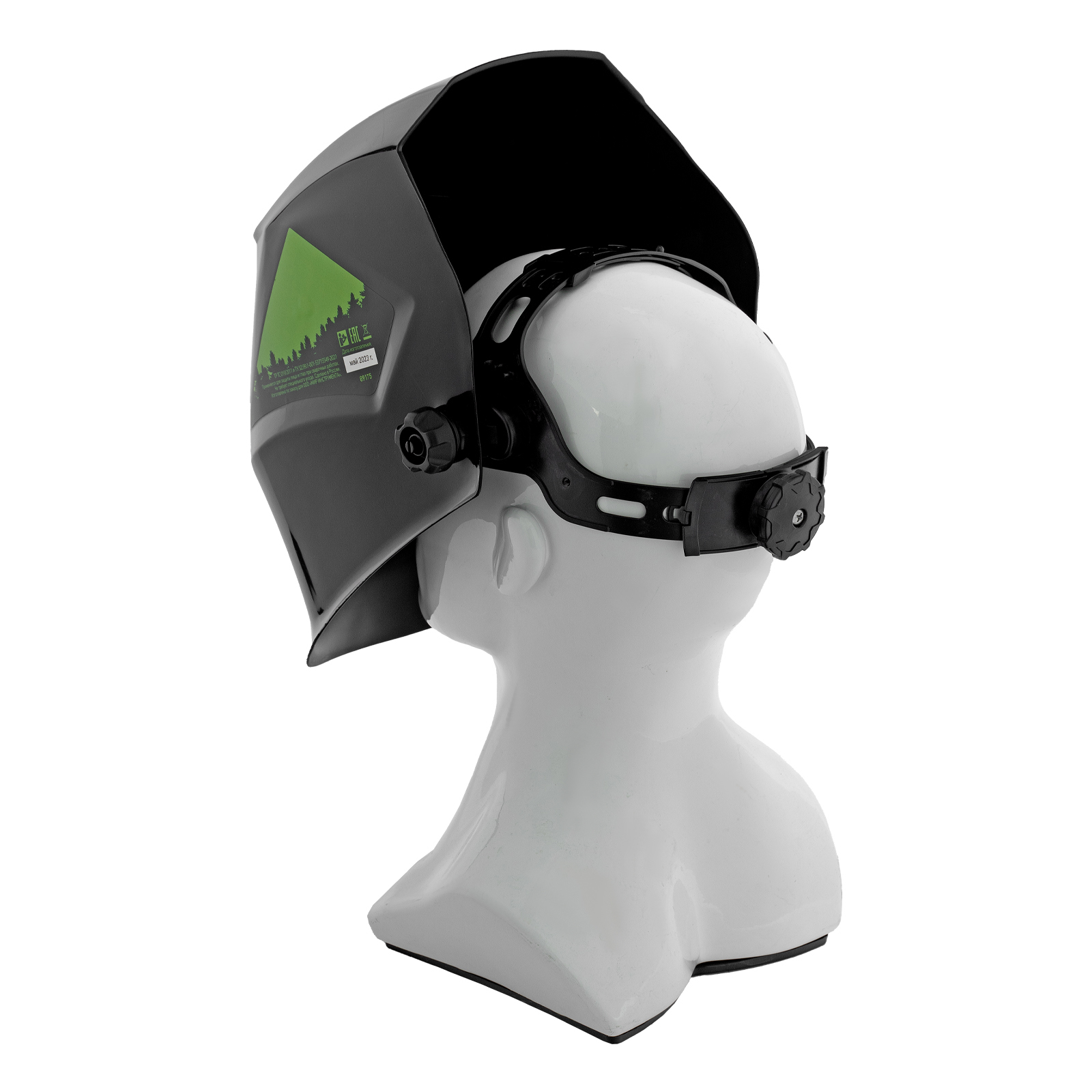 - Удобная посадка на голове — регулируемое оголовье позволяет надежно зафиксировать щиток, чтобы он не спадал во время работы.