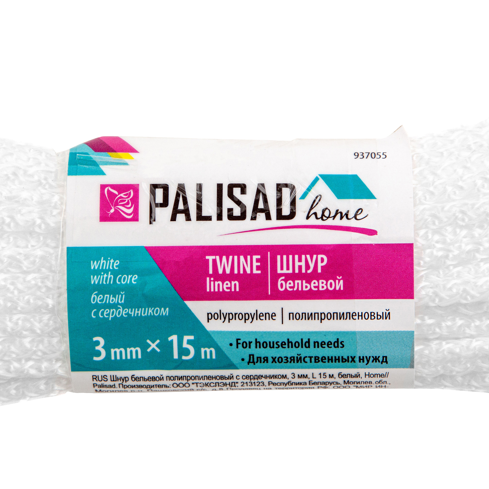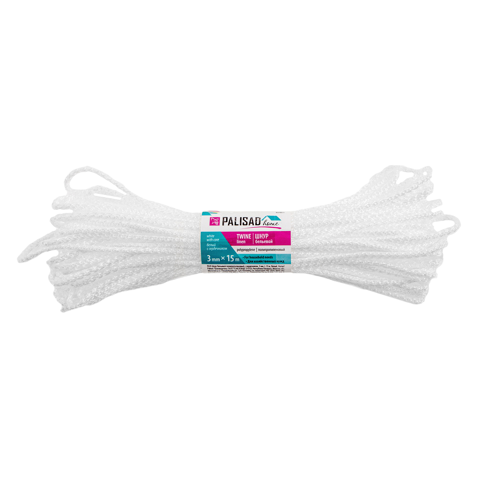 Белый полипропиленовый бельевой шнур Palisad Home 937055 с сердечником, диаметром 3 мм и длиной 15 м, используется для сушки белья, а также в качестве хозяйственной веревки в быту, на рыбалке или в походе. От обычной бельевой веревки для сушки он отличается сердечником из полипропилена, увеличивающим стойкость к нагрузкам. Шнур с полипропиленовой оплеткой выдерживает разрывную нагрузку до 30 кгс, устойчив к растяжению и не провисает под весом мокрых вещей.