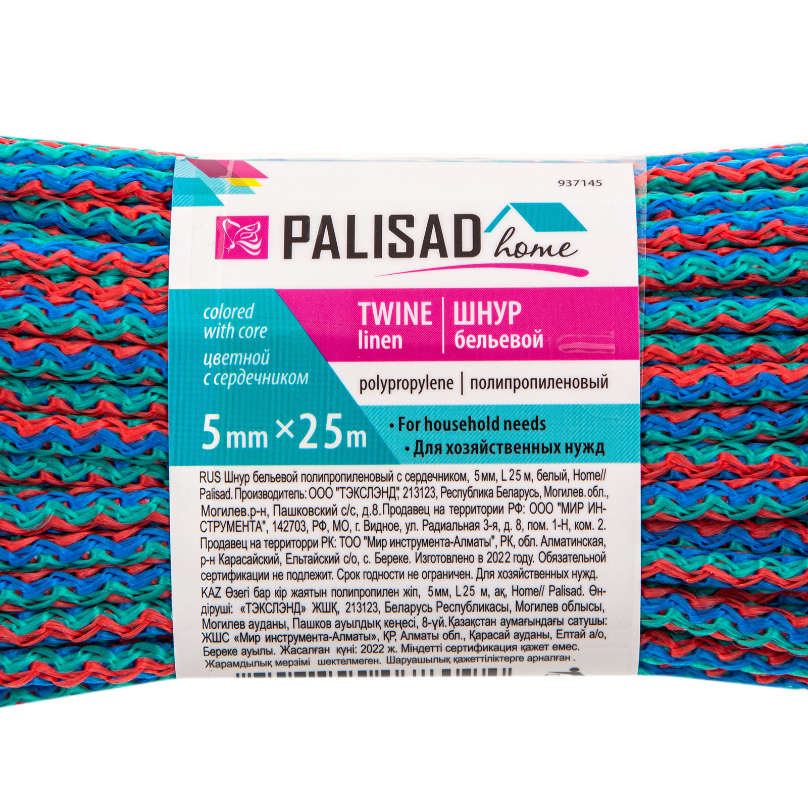 Шнур бельевой полипропиленовый с сердечником, 5 мм L 25 м, цветной, Home Palisad в Челябинске