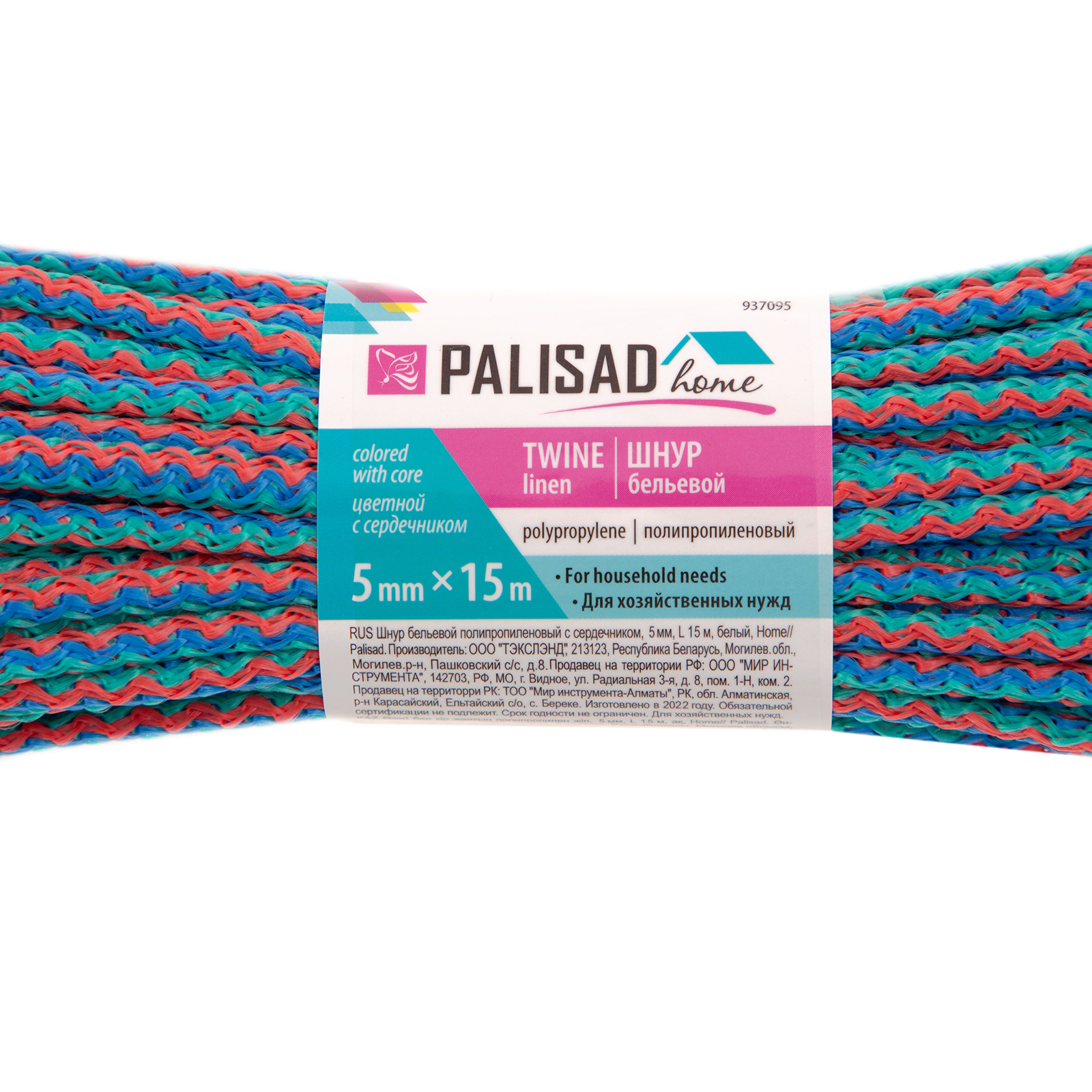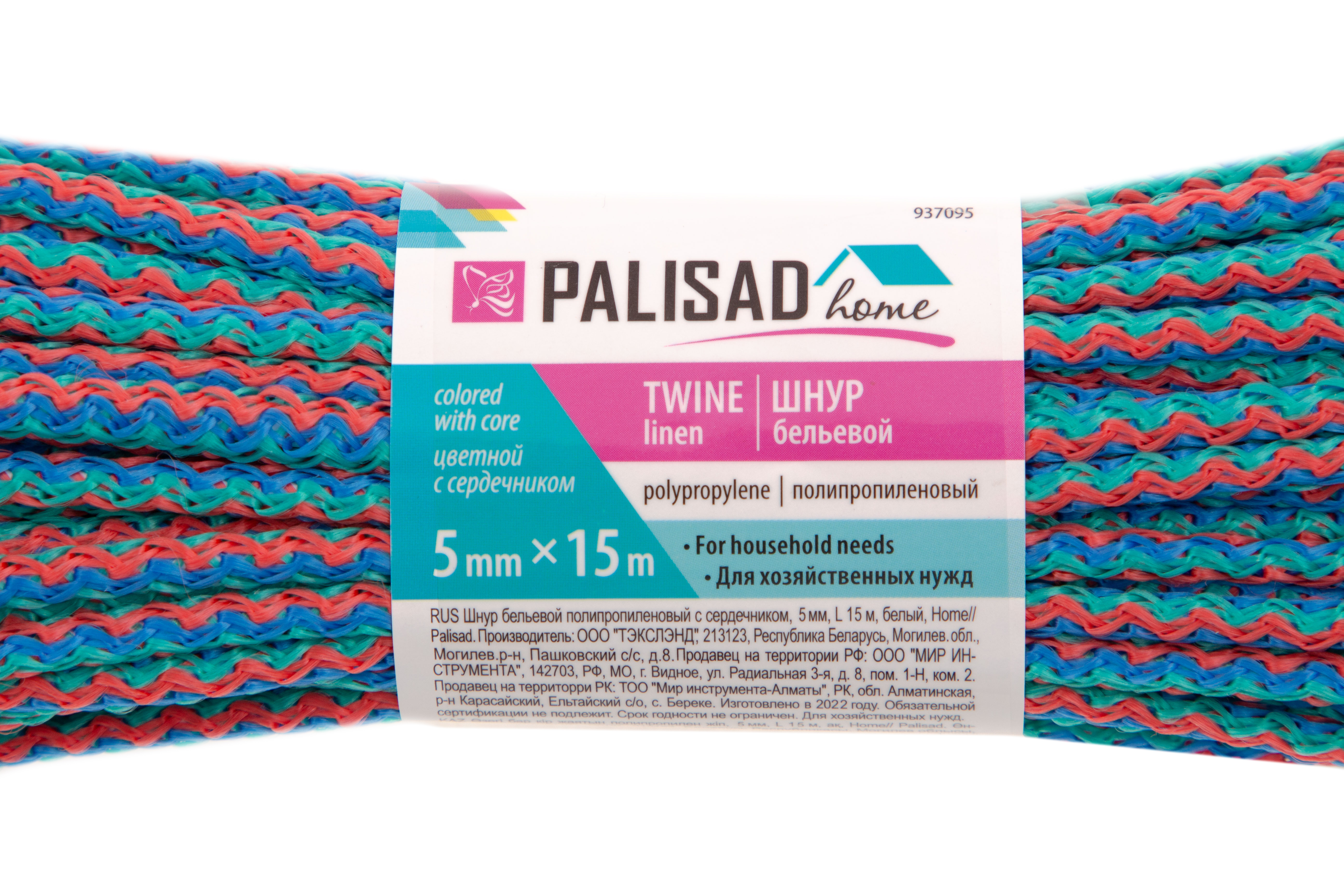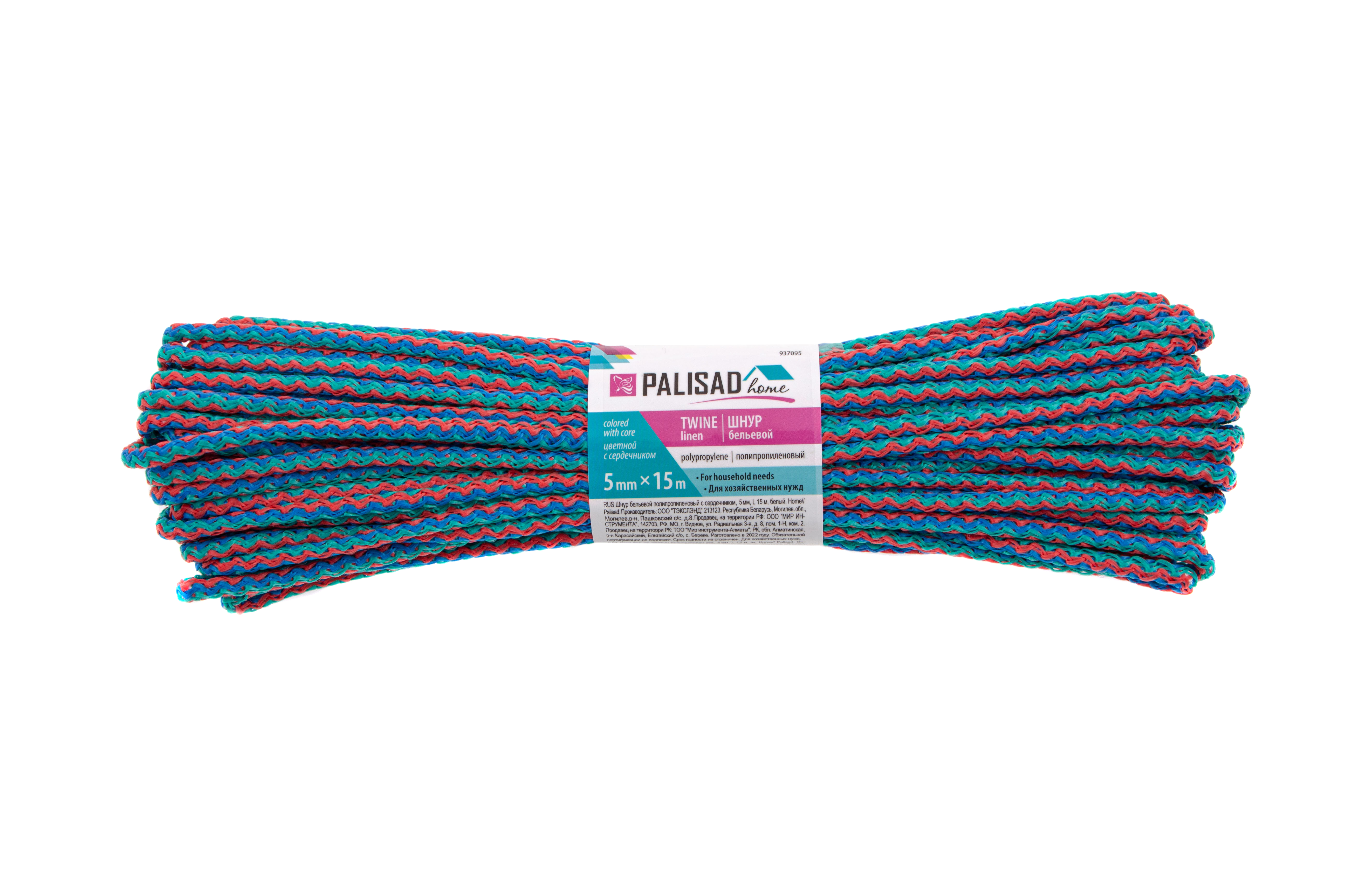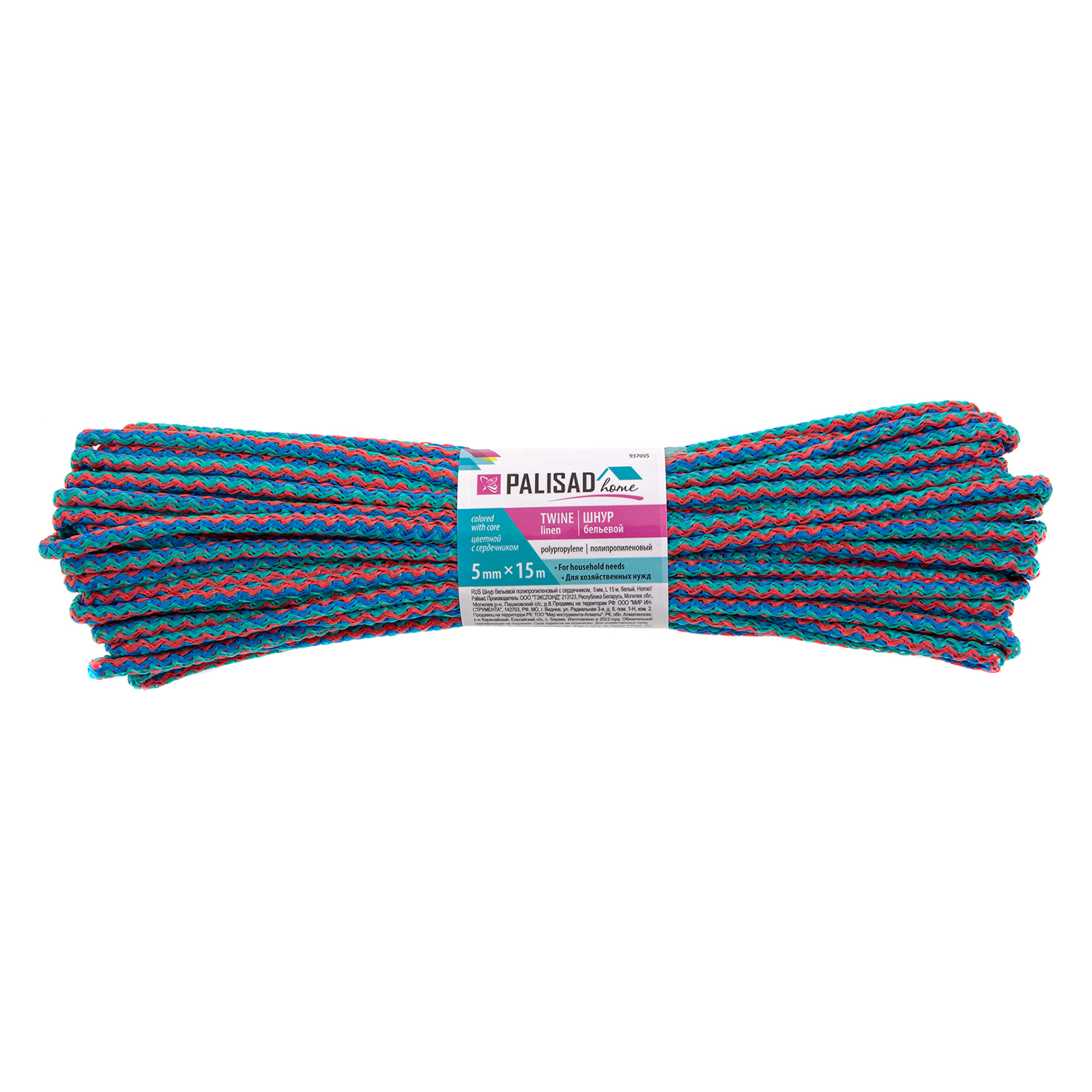 Шнур бельевой полипропиленовый с сердечником, 5 мм, L 15 м, цветной, Home Palisad в Челябинске