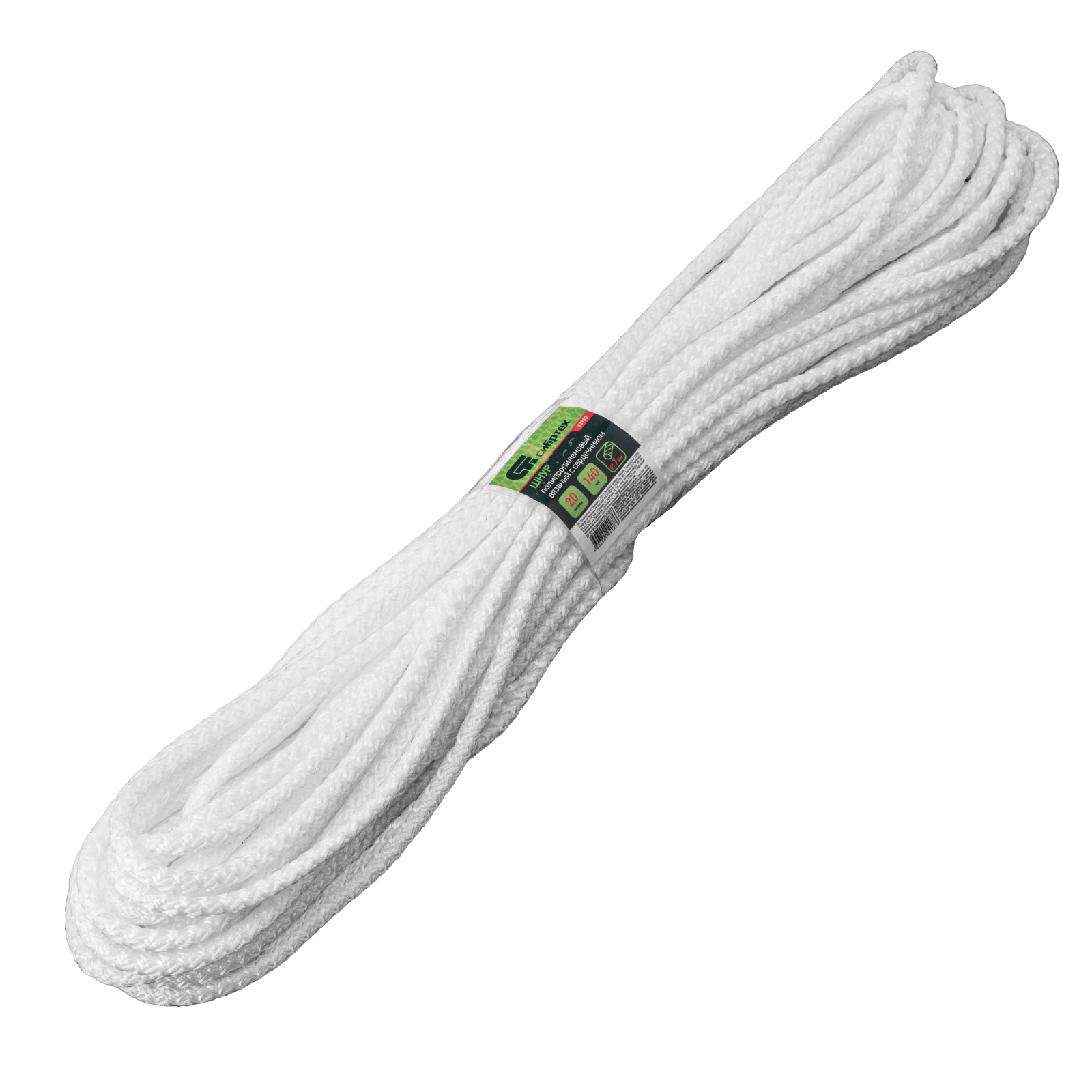 Шнур вязаный полипропиленовый с серд. белый, 7 мм, L 20 м, Сибртех в Челябинске