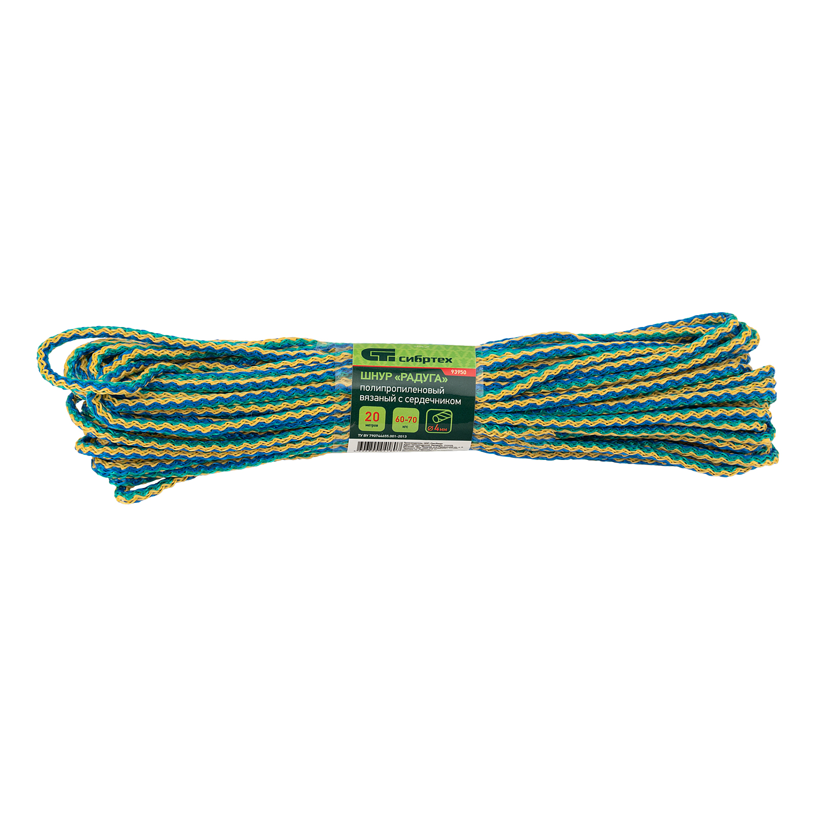 Шнур вязаный полипропиленовый с серд."Радуга", 4 мм, L 20 м, Сибртех в Челябинске