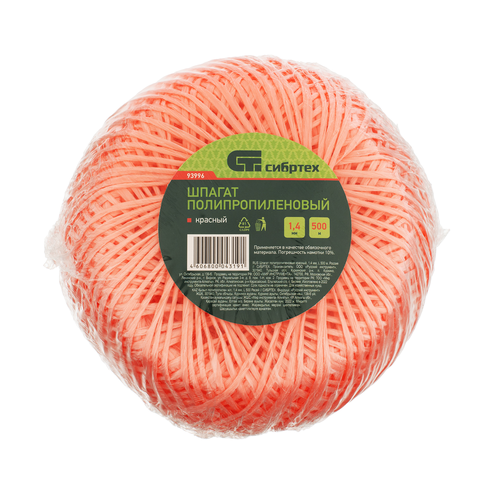 Шпагат полипропиленовый красный, 1.4 мм, L 500, Сибртех в Челябинске