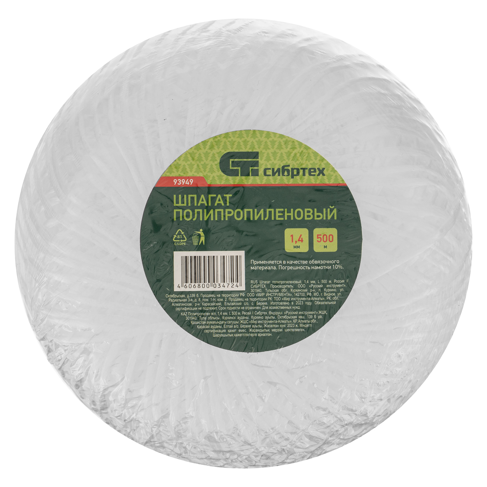 Шпагат полипропиленовый, 1.4 мм, L 500 м, Сибртех в Челябинске