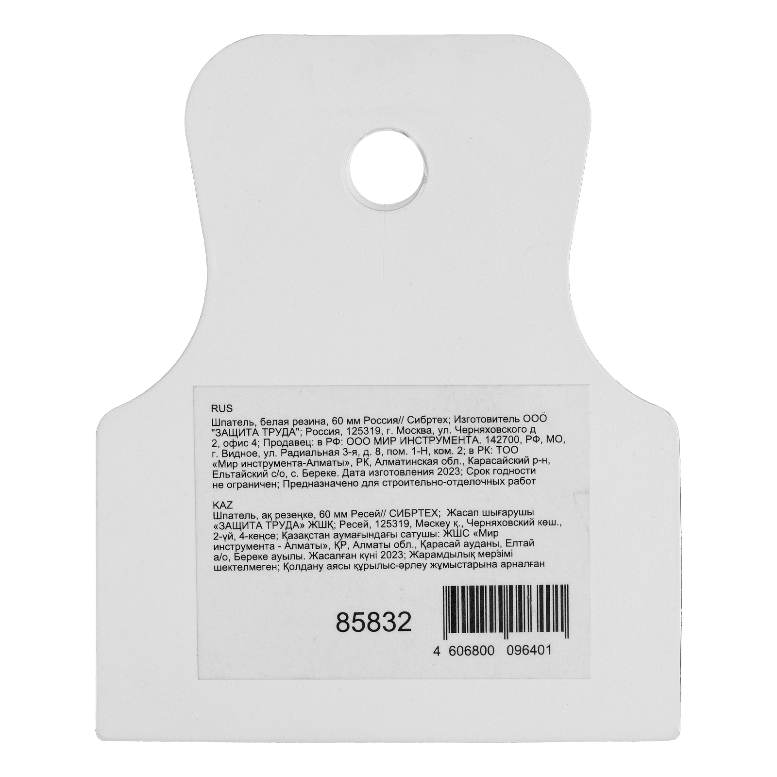 Шпатель, белая резина, 60 мм Сибртех по ценам производителя в Челябинске с доставкой по всей России