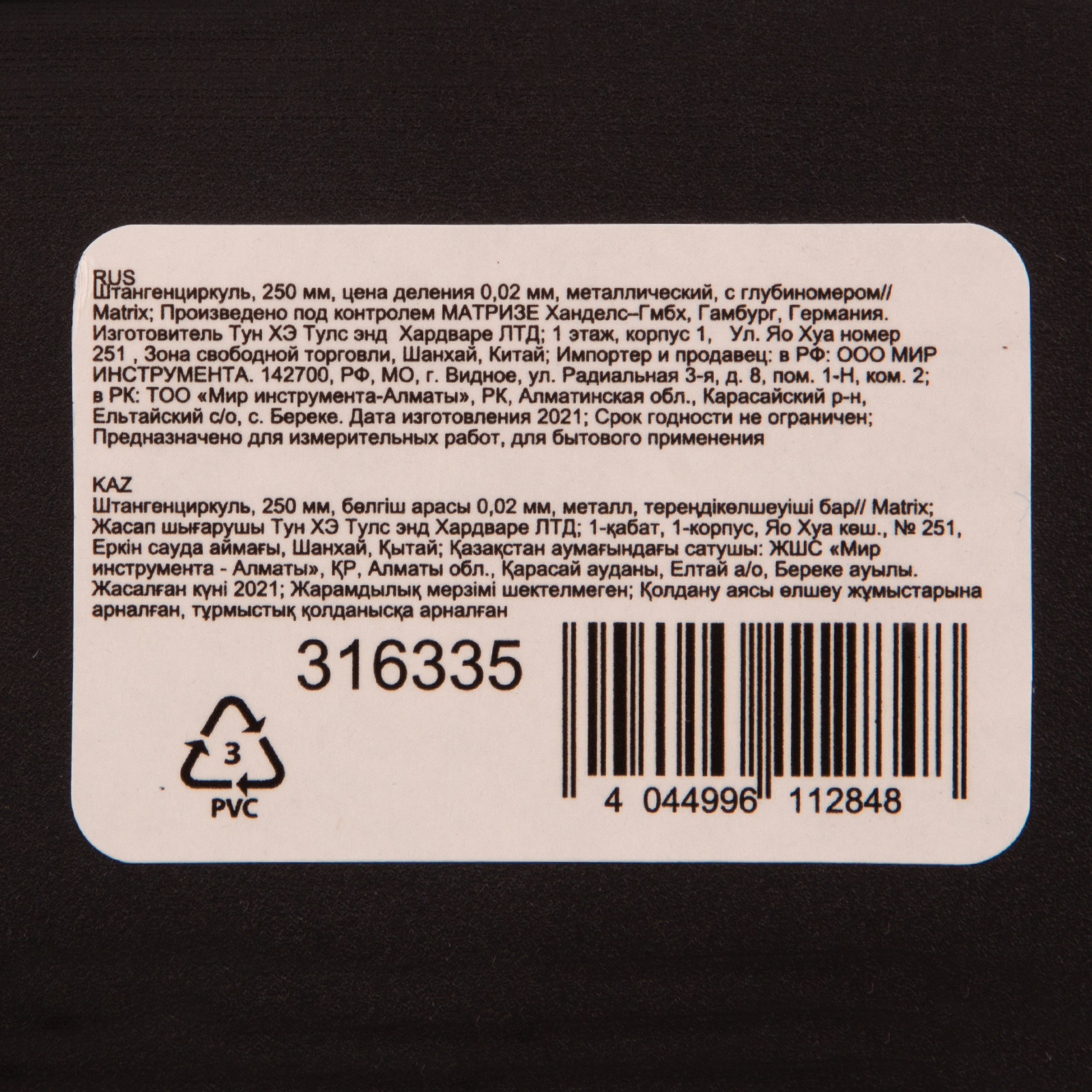 Штангенциркуль, 250 мм, цена деления 0.02 мм, металлический, с глубиномером Matrix в Челябинске
