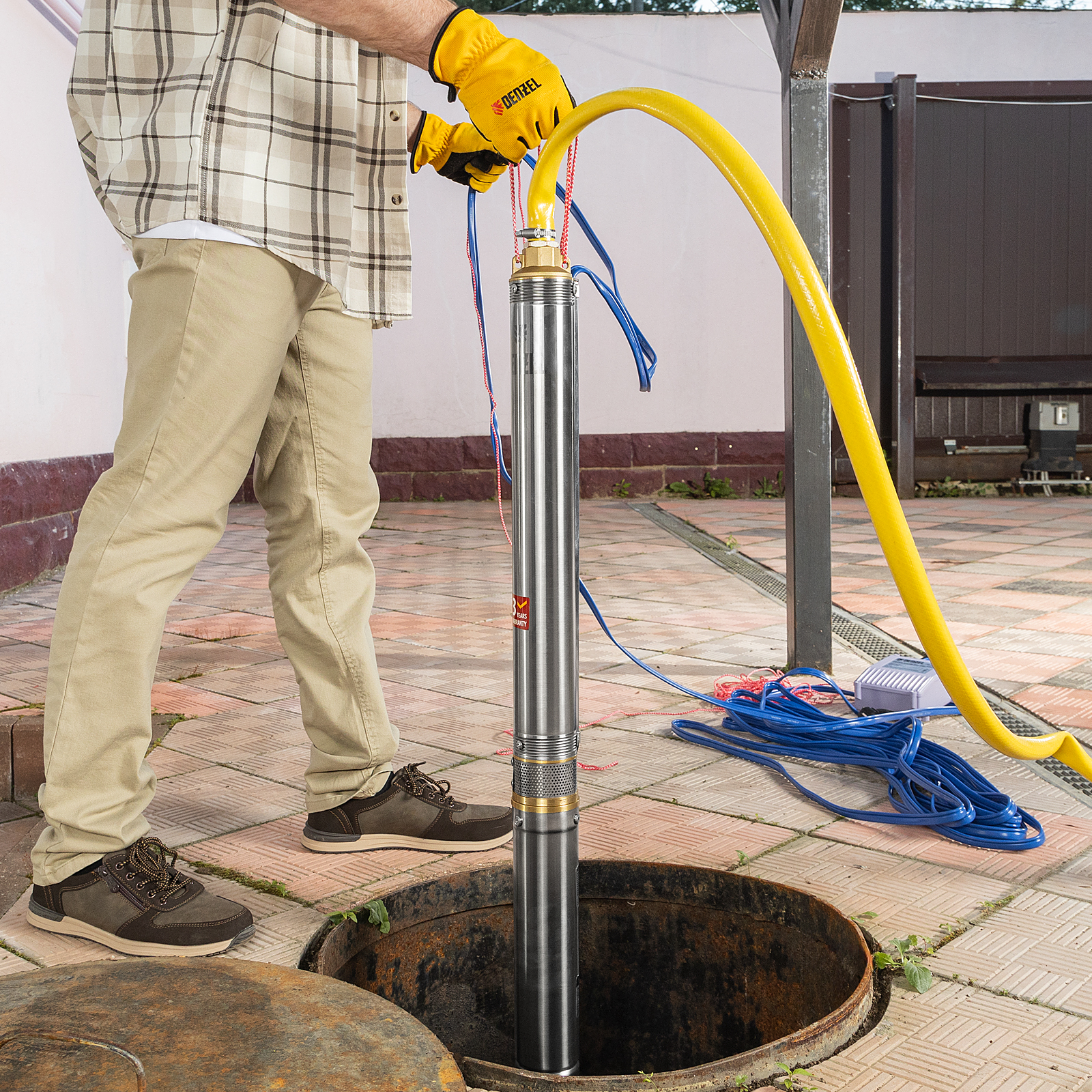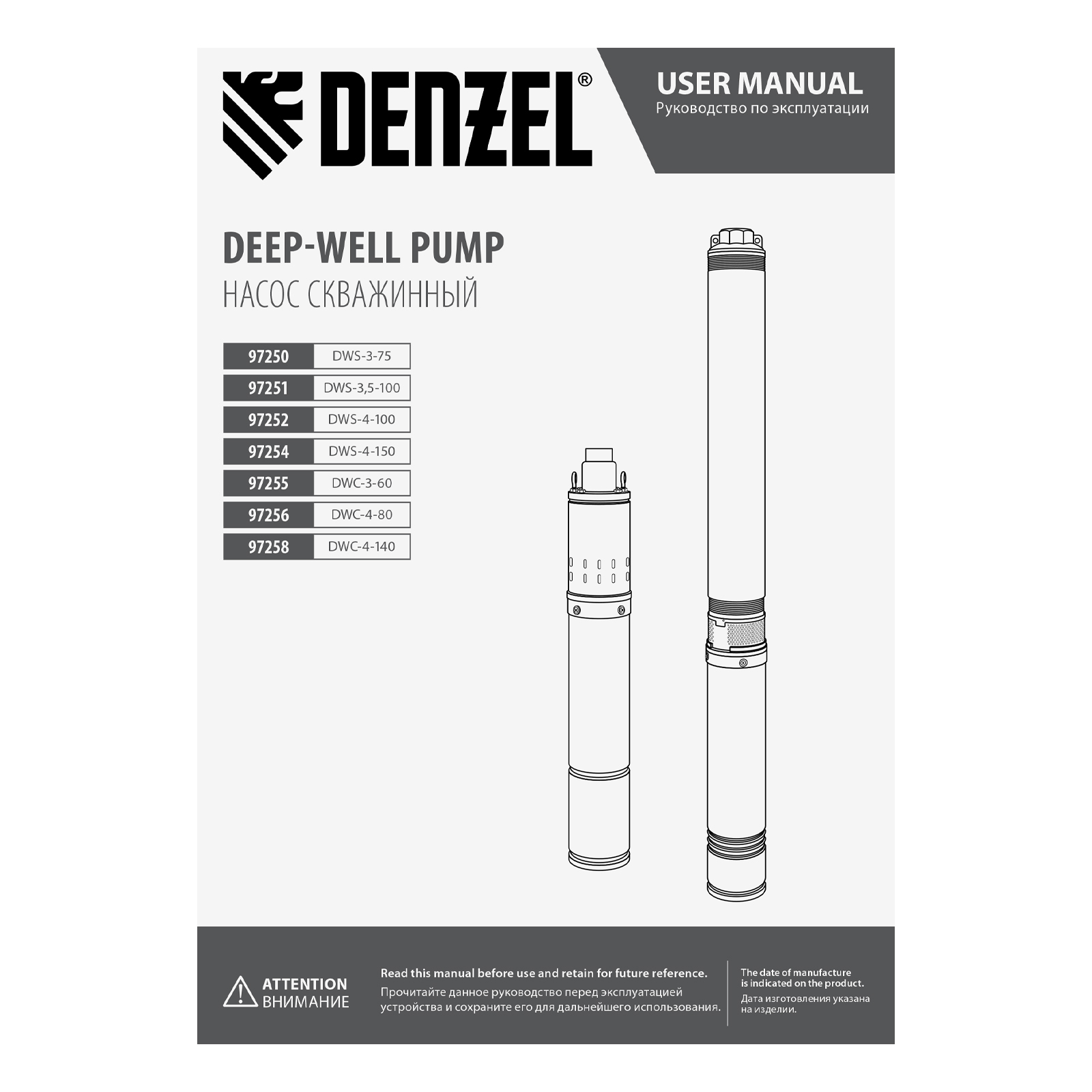 Скважинный насос DWC-3-60, центробежный, диаметр 3", 800 Вт, 3300 л/ч, напор 60 м Denzel в Челябинске