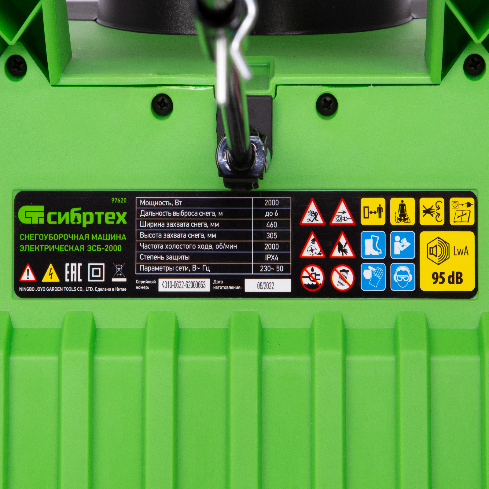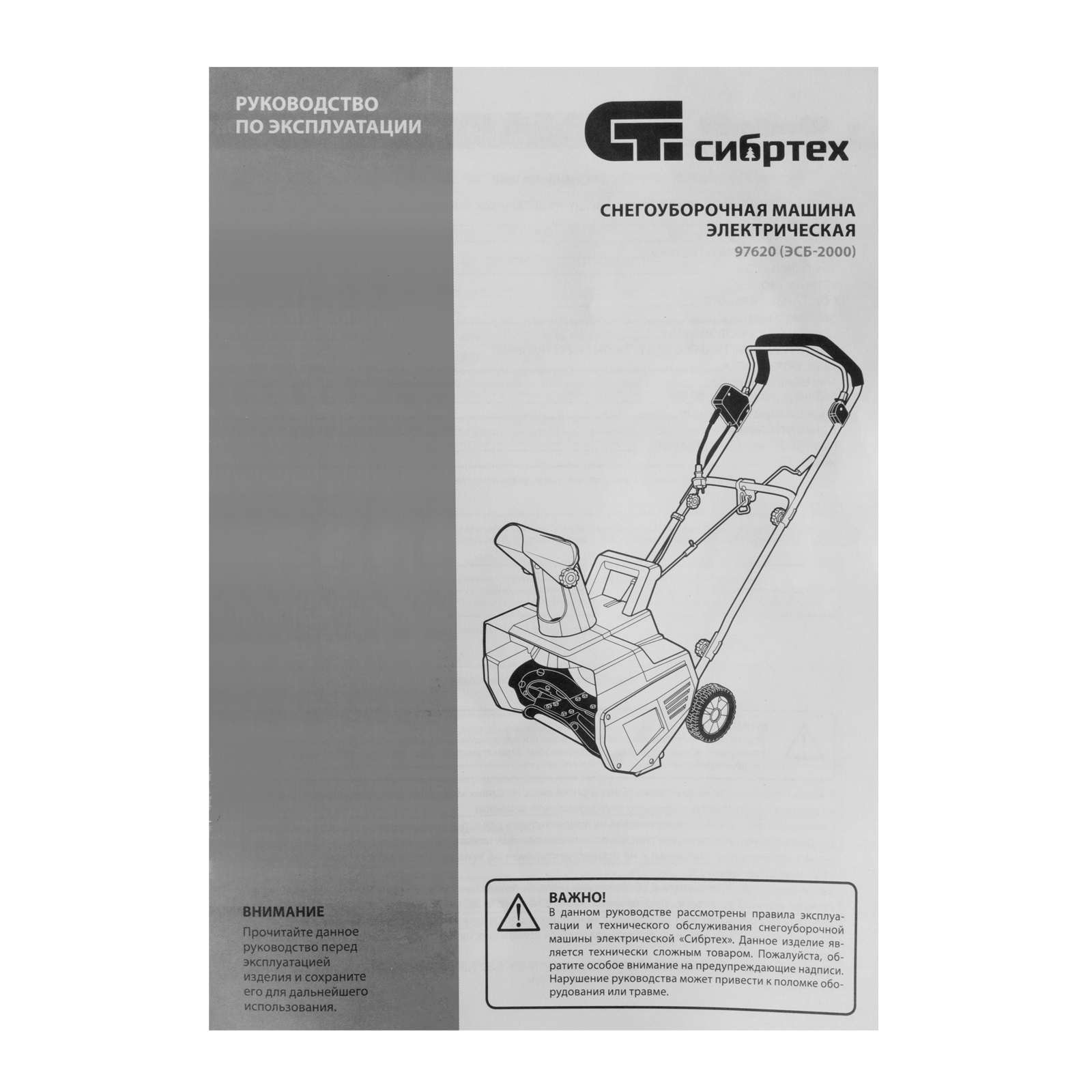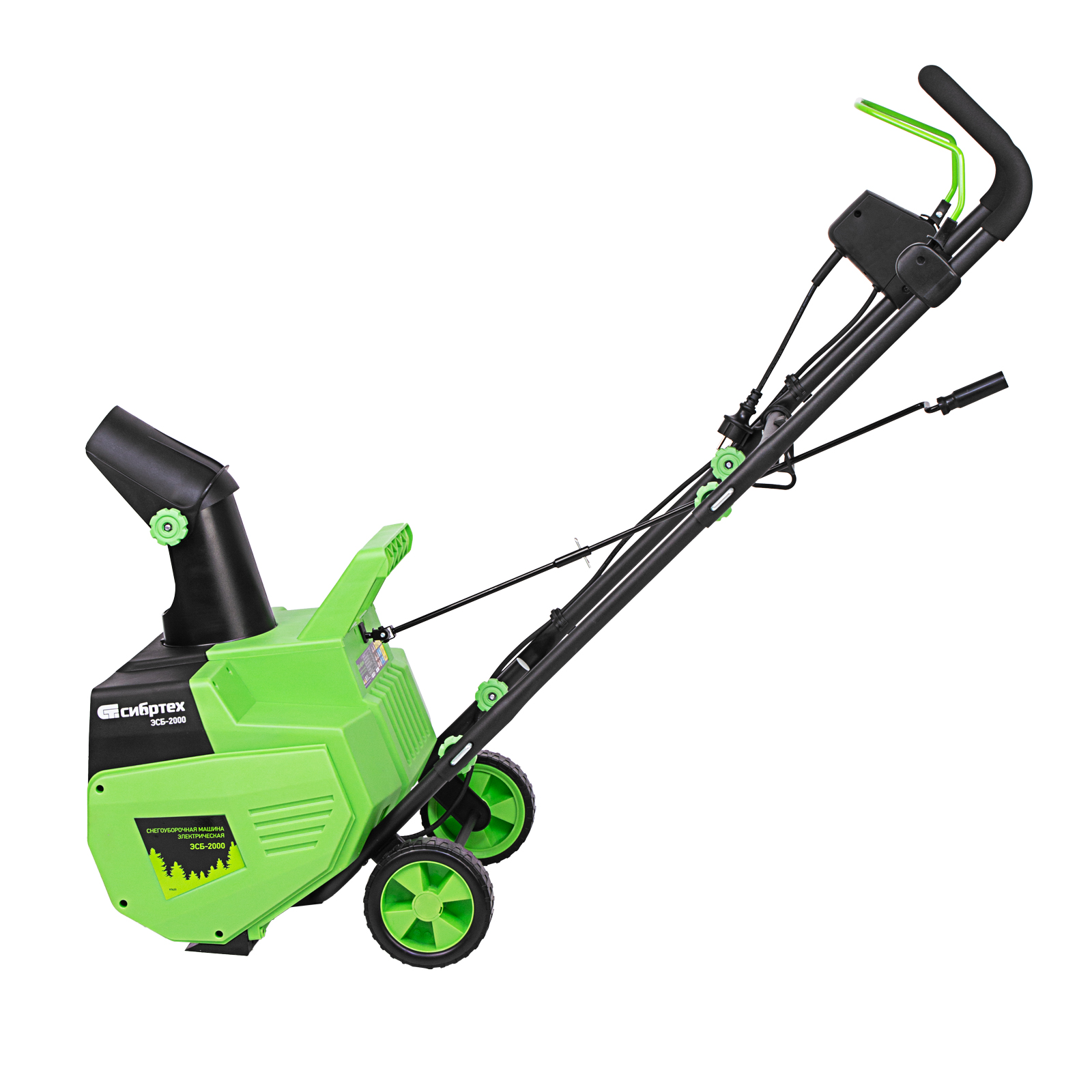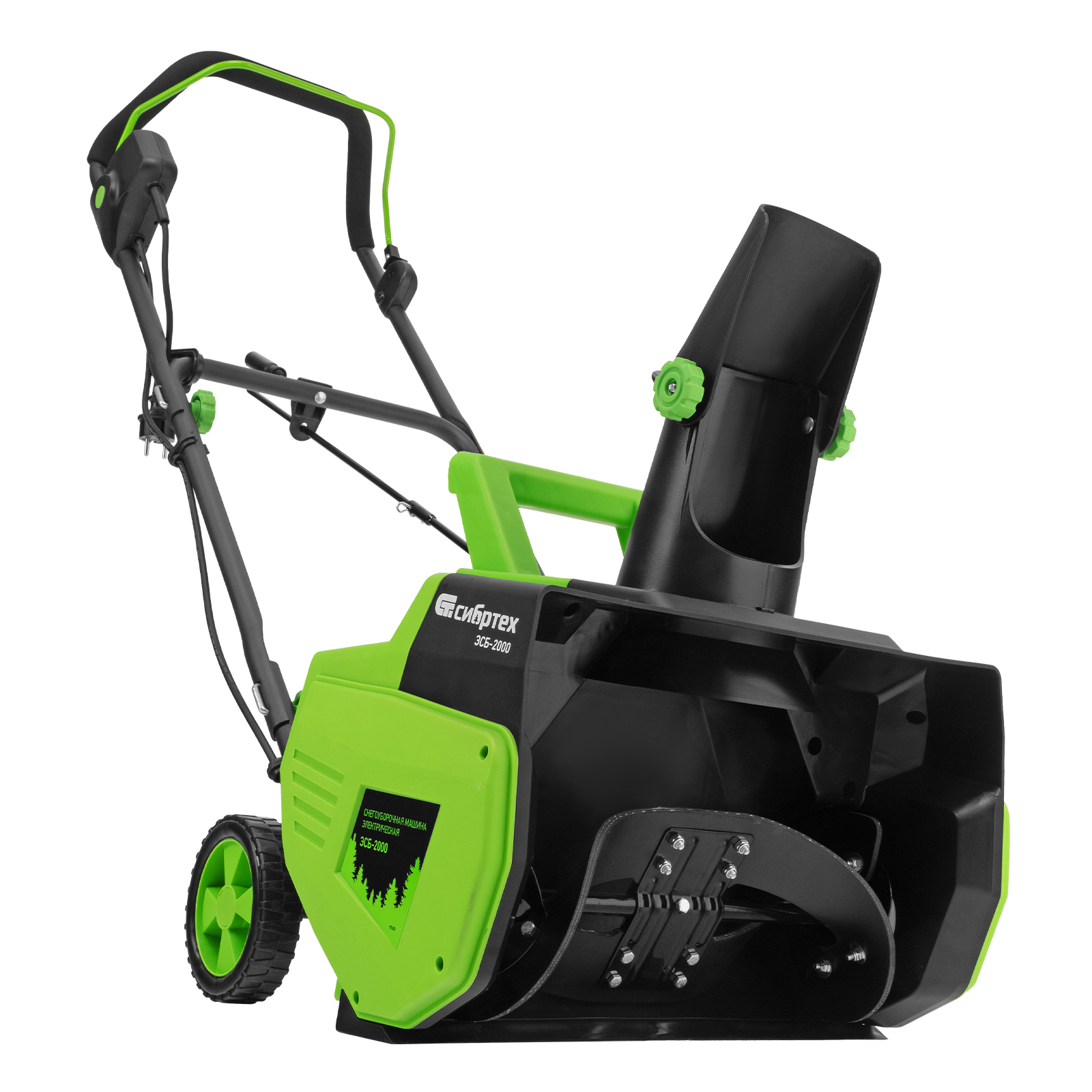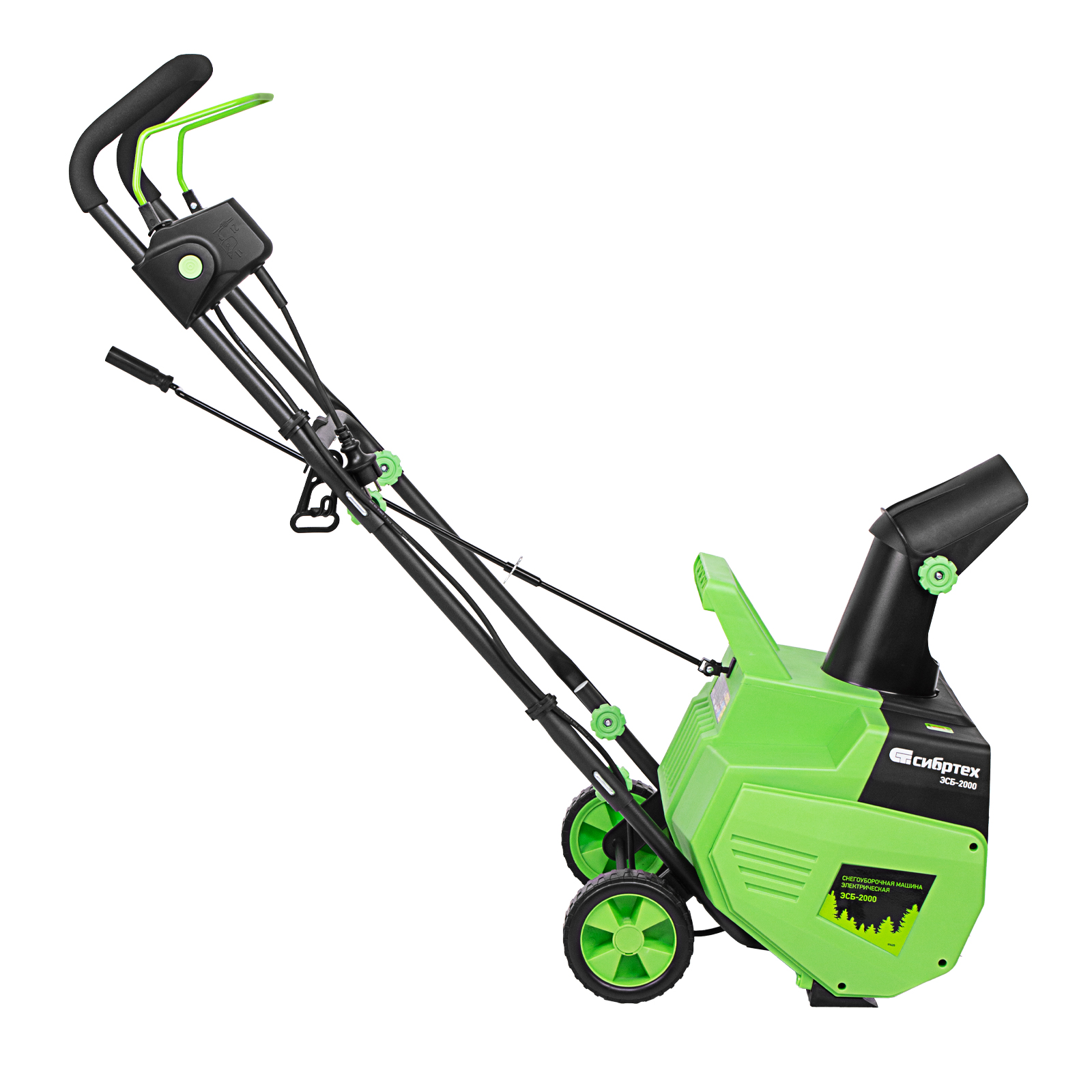 Электрическая снегоуборочная машина Сибртех ЭСБ-2000 97620 мощностью 2 кВт облегчит уборку территории после легкого снегопада. Работает от электрической сети, поэтому не производит шума и опасных выхлопов. Электродвигатель не требует сложного технического обслуживания.