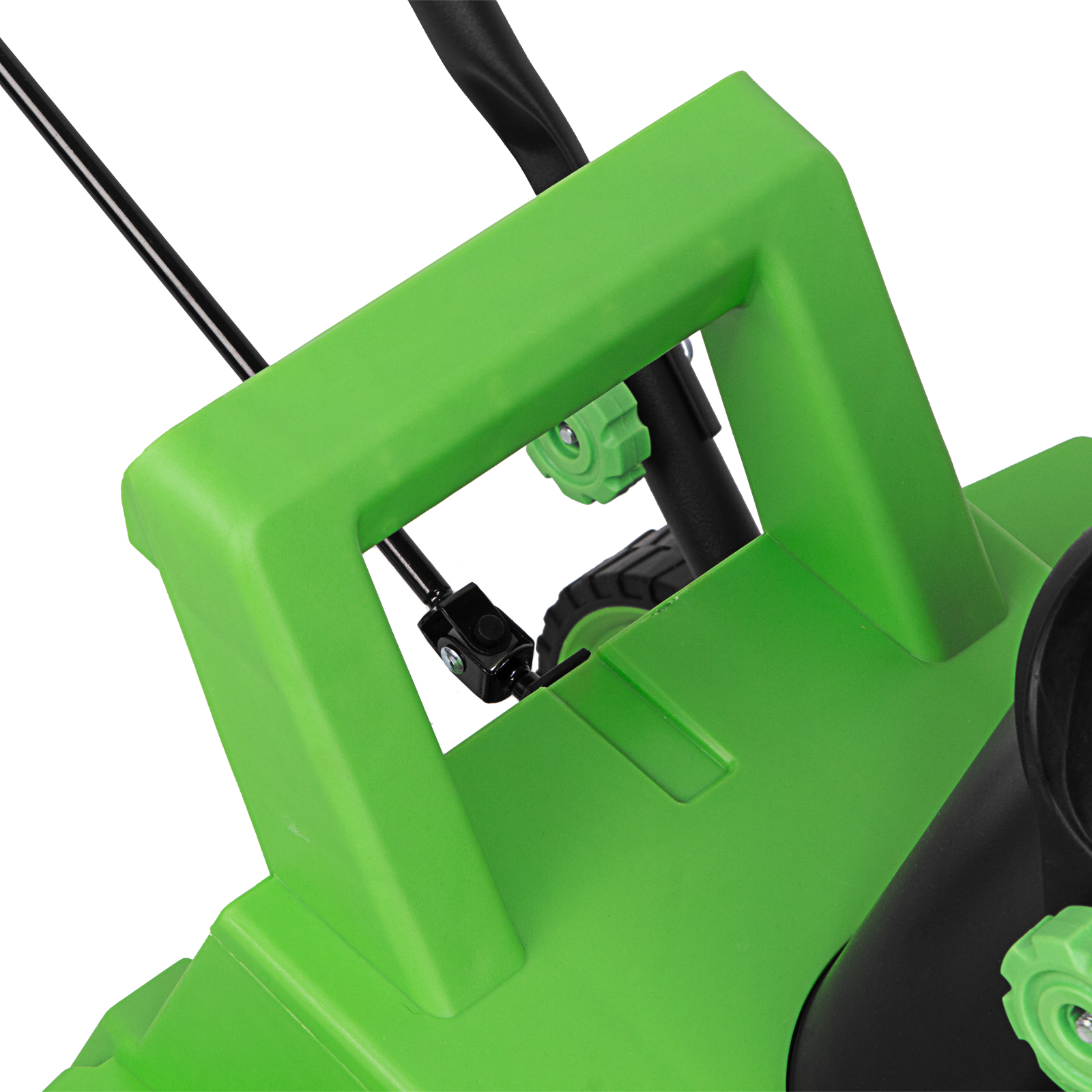 - Удобное хранение и транспортировка — благодаря складной рукоятке снегоуборщик не занимает много места.