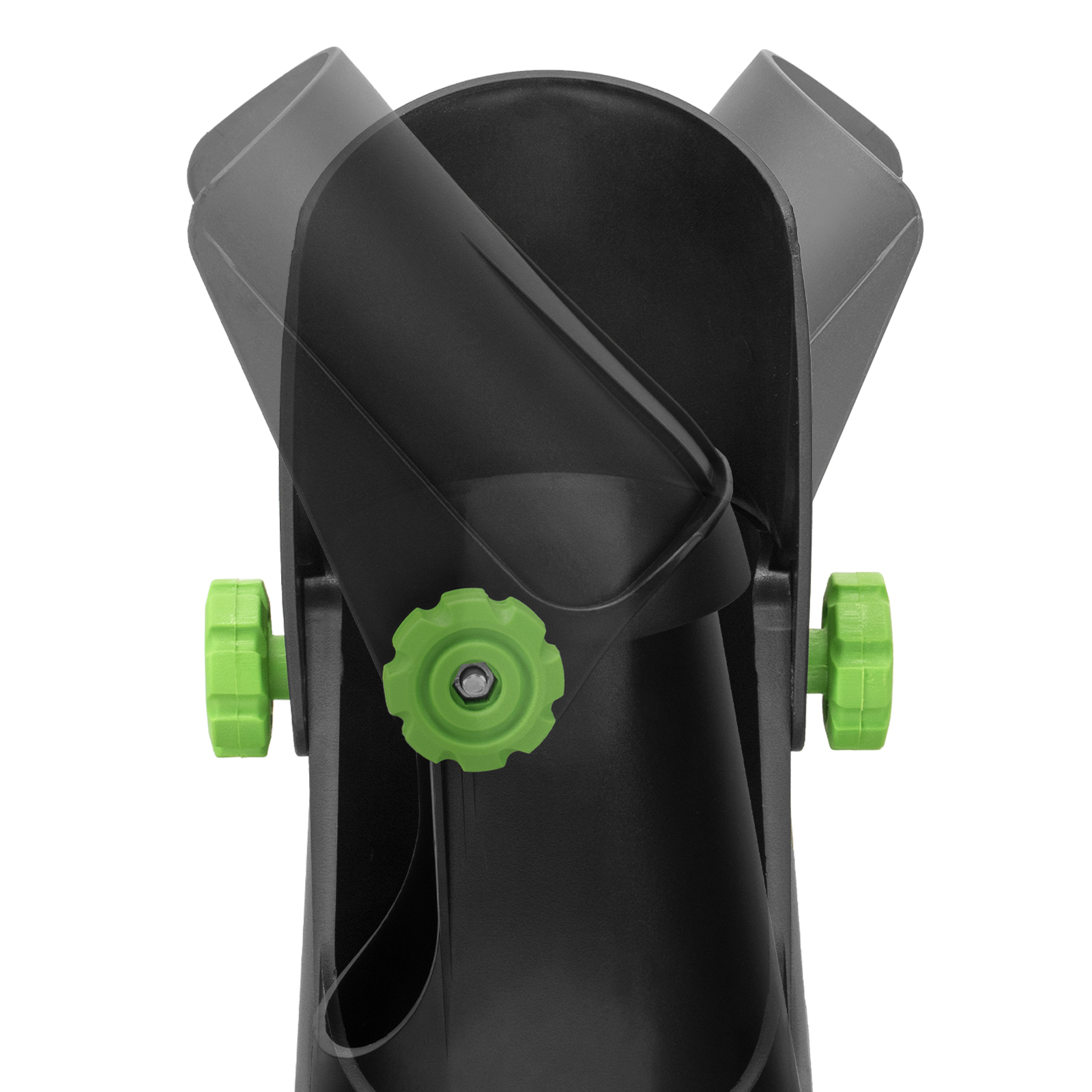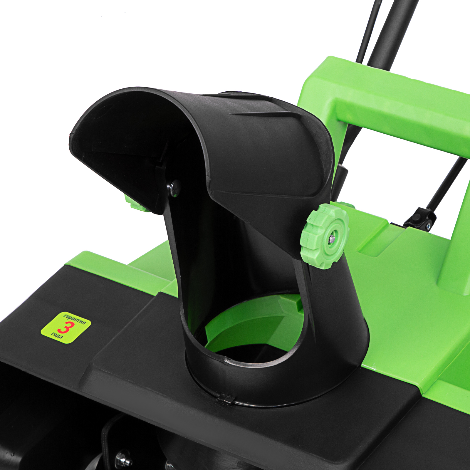 - Эффективная работа — в зависимости от размера территории можно установить дальность выброса снега до 6 м, а также отрегулировать угол поворота выпускного желоба в пределах 180°.
