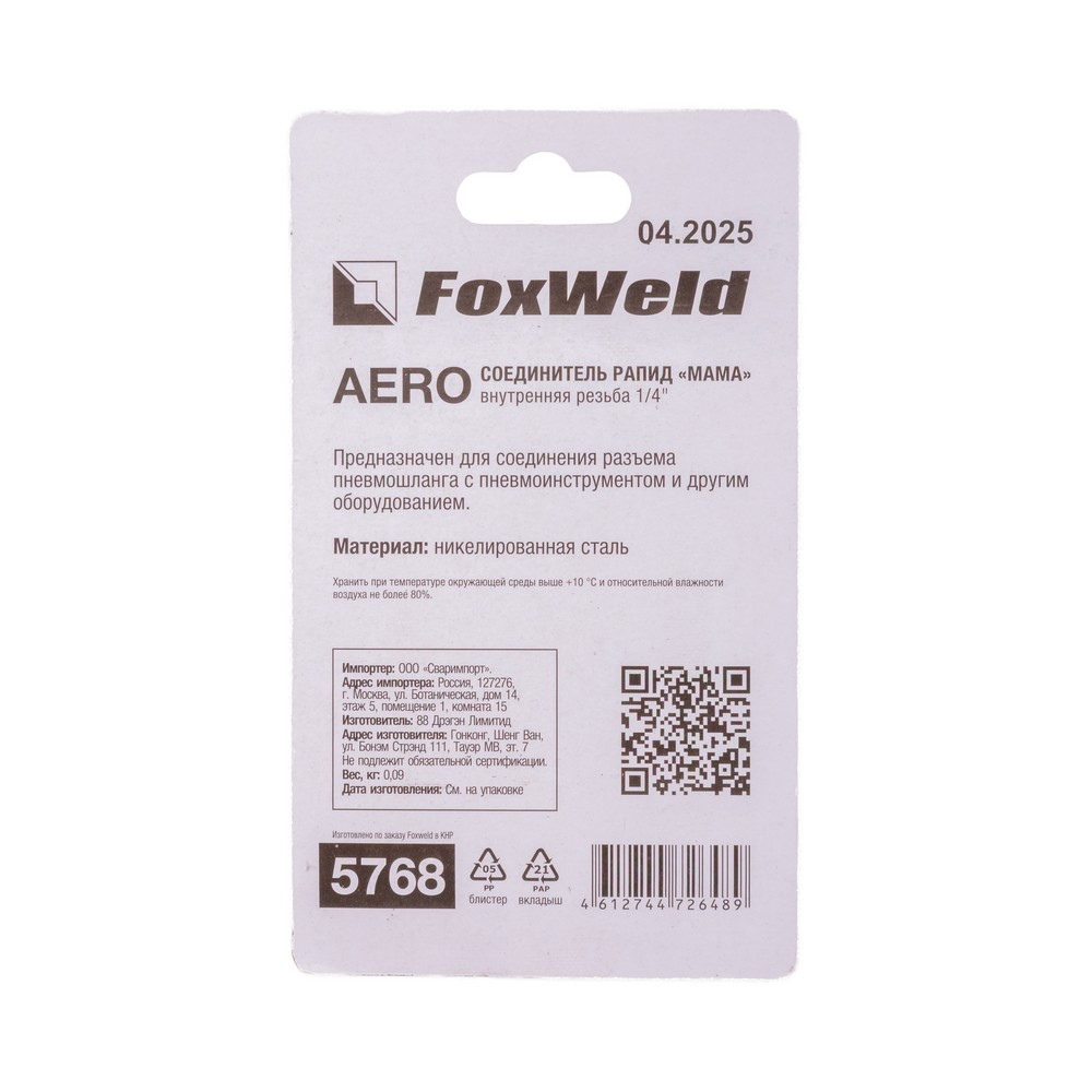 Соединитель Rapid F Мама - внутренняя резьба 1/4 AERO в Челябинске