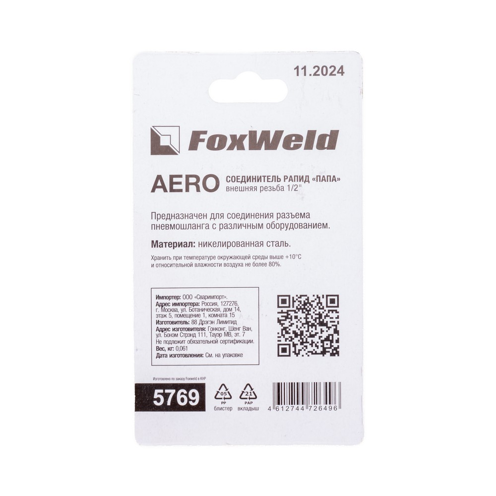 Соединитель Rapid M Папа - внешняя резьба 1/2 AERO в Челябинске