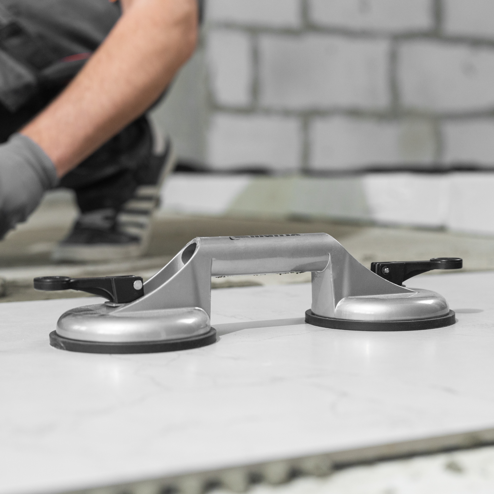 Алюминиевый двойной стеклодомкрат Matrix 875205 позволяет поднимать, переносить и устанавливать стекла, зеркала, плитку, листовой металл и другие гладкие материалы. Имеет две вакуумные присоски, которые бережно и надежно фиксируются на поверхности при помощи зажимов. Стеклодомкрат позволяет длительное время удерживать груз весом до 80 кг. Будет полезен во время строительства, ремонта, а также пригодится в быту.