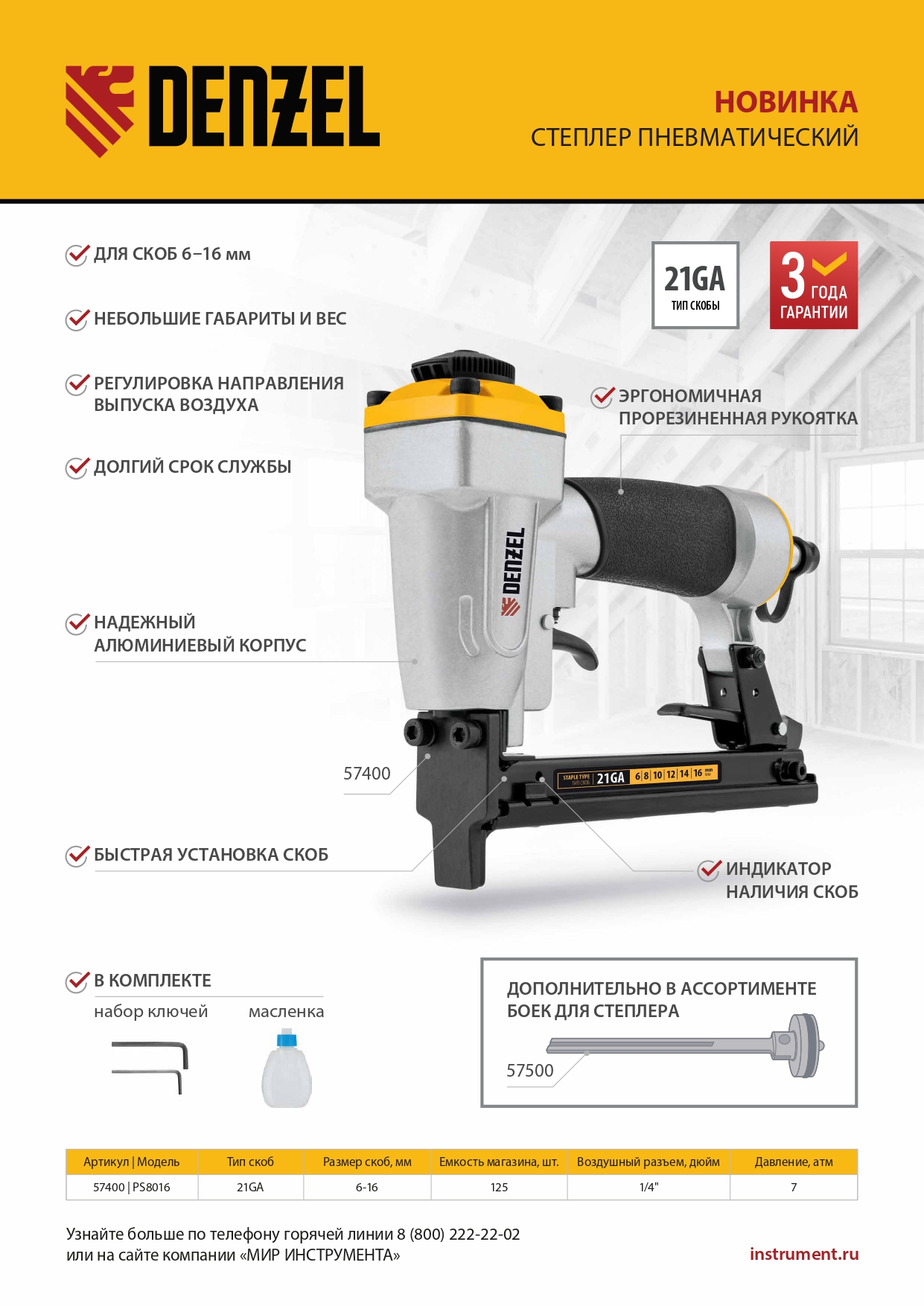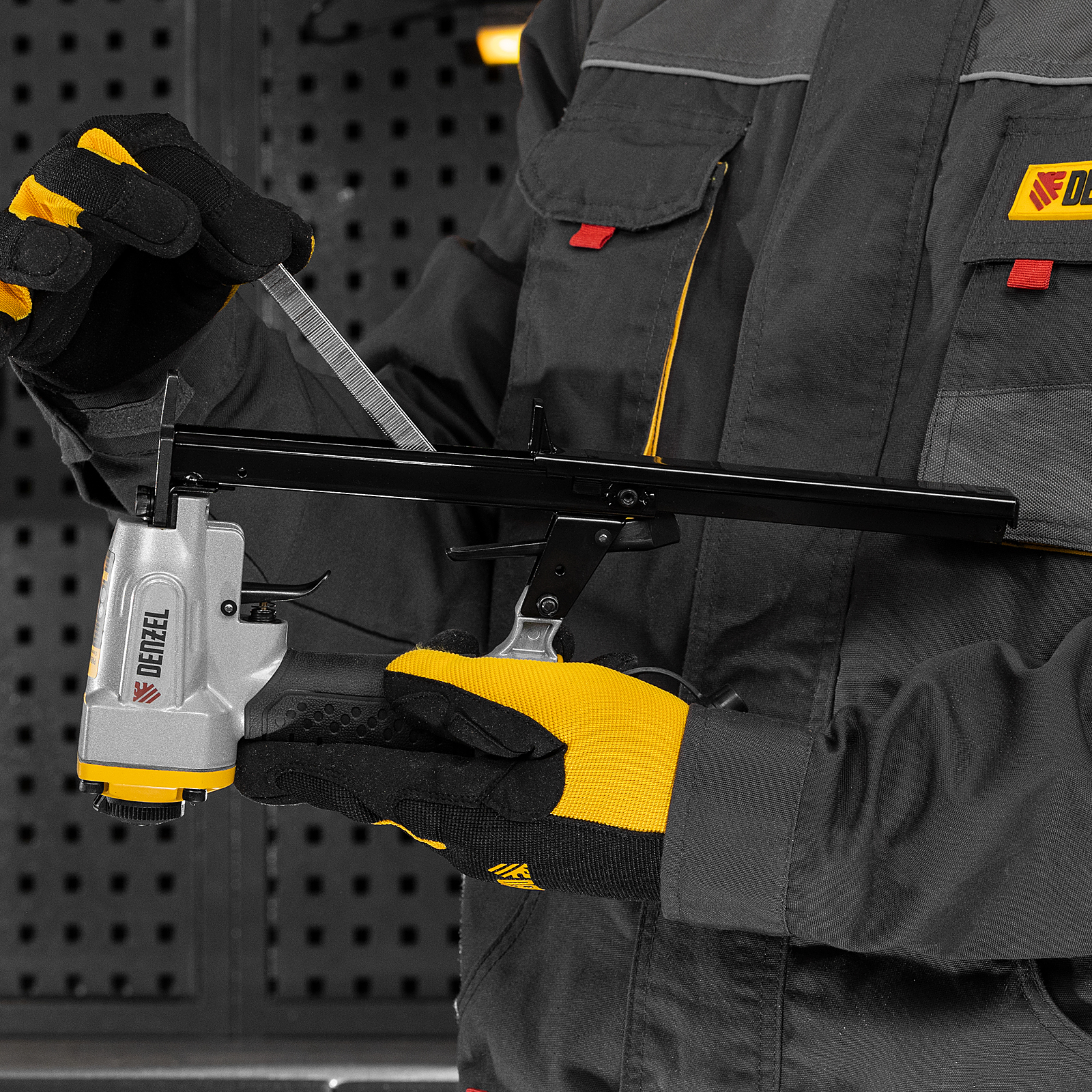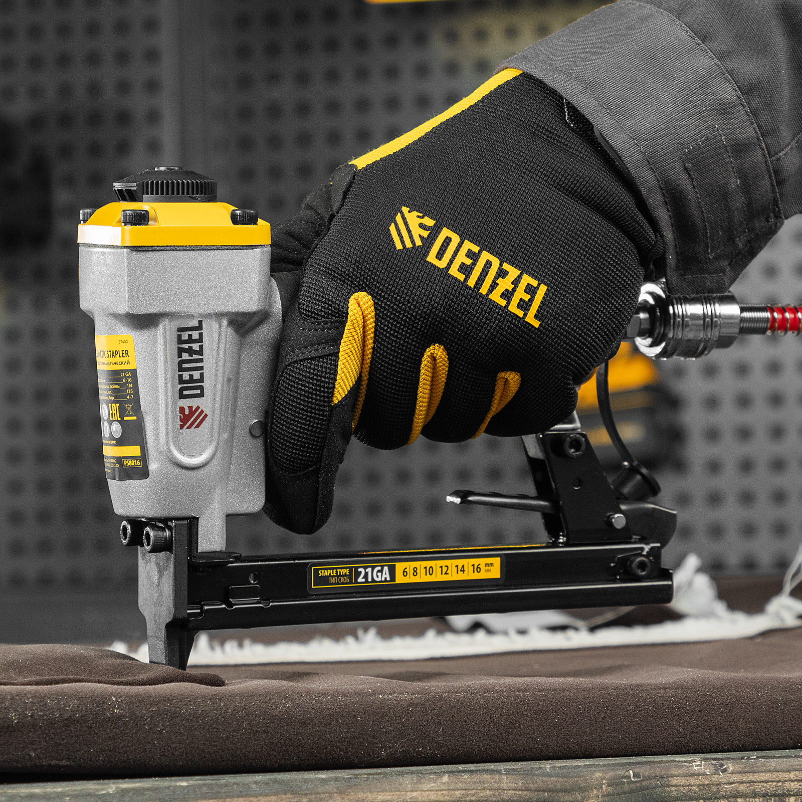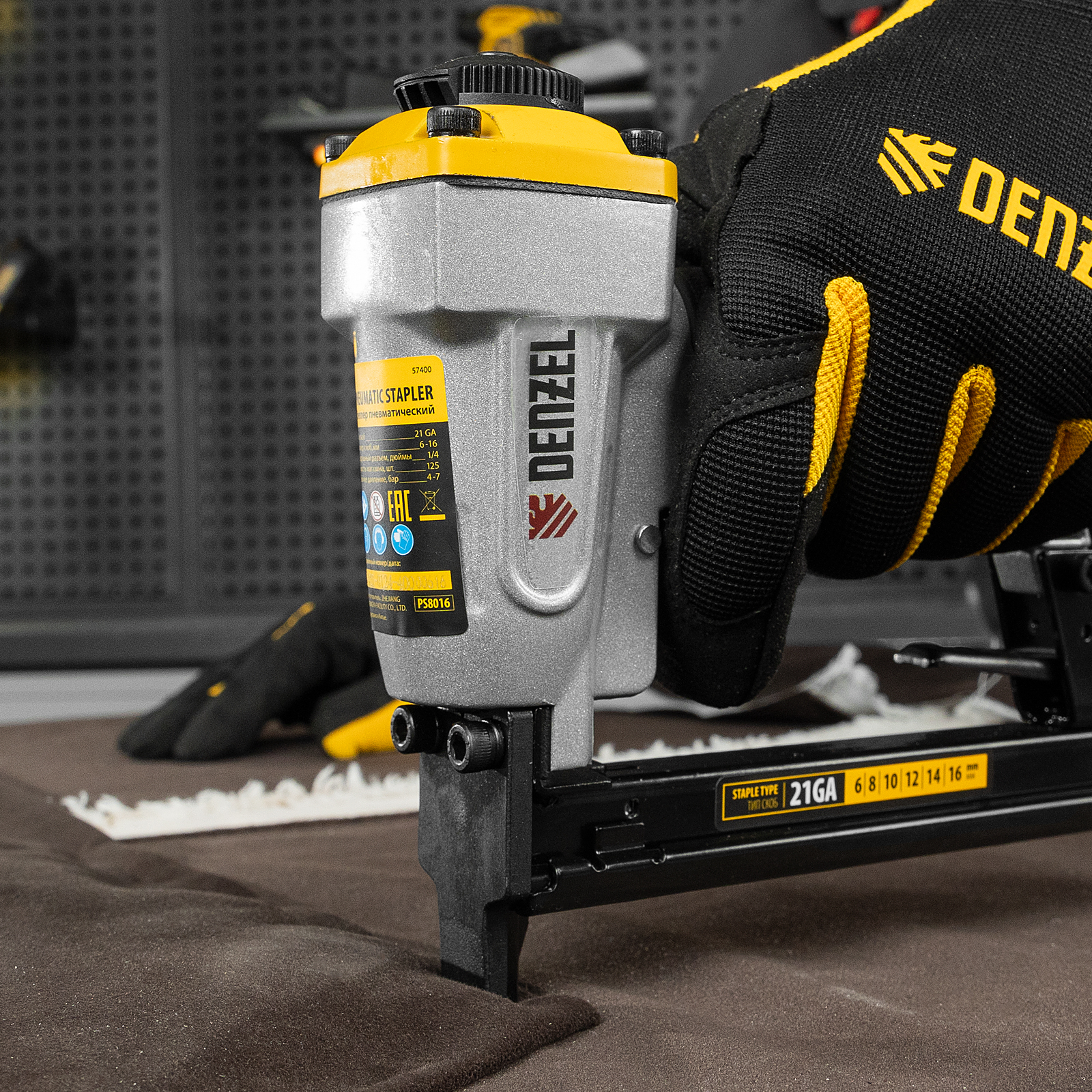 Степлер пневматический PS8016 для прямоугольных скоб 21GA от 6 до 16 мм Denzel в Челябинске