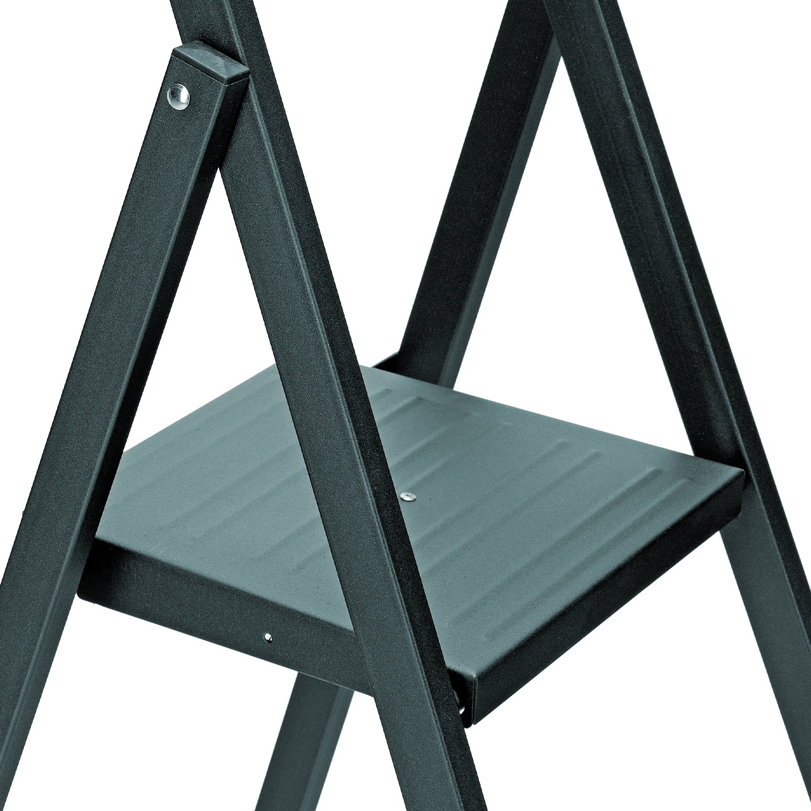 - Долговечность — антрацитовое покрытие порошковой эмалью защищает стремянку от коррозии.