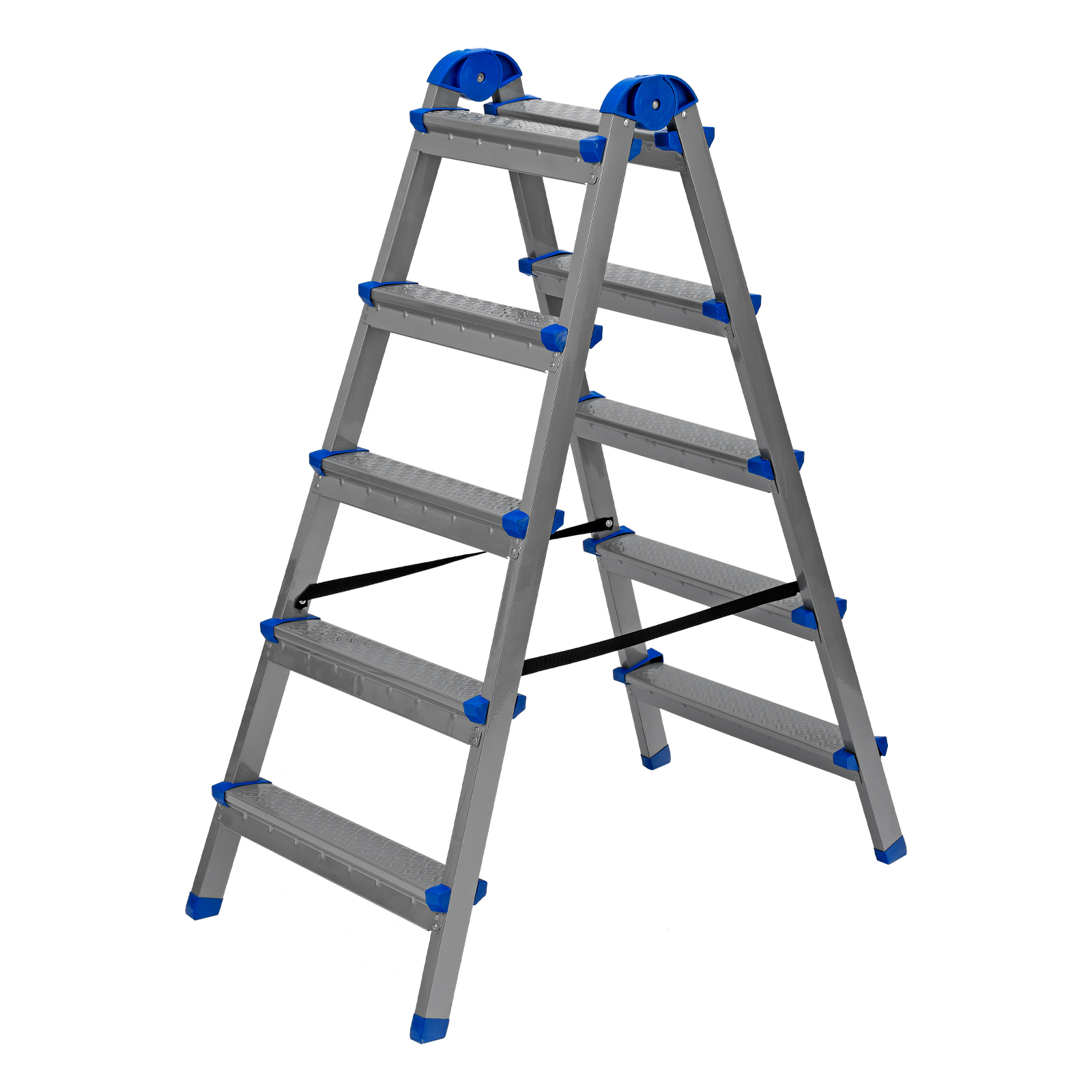 Стремянка двухсторонняя 5 ступеней, сталь профиль, стальные ступени, Сибртех в Челябинске