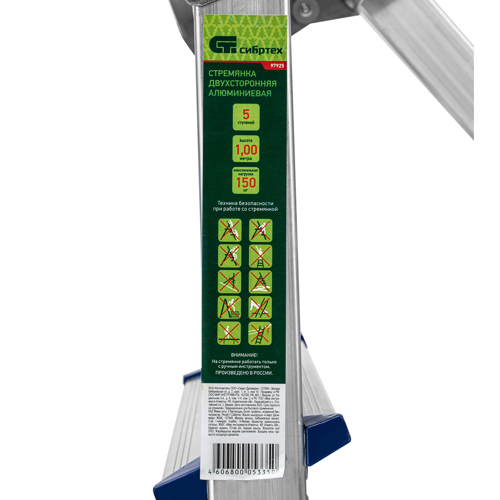Стремянка двусторонняя 5 ступеней, алюминиевая, Сибртех в Челябинске