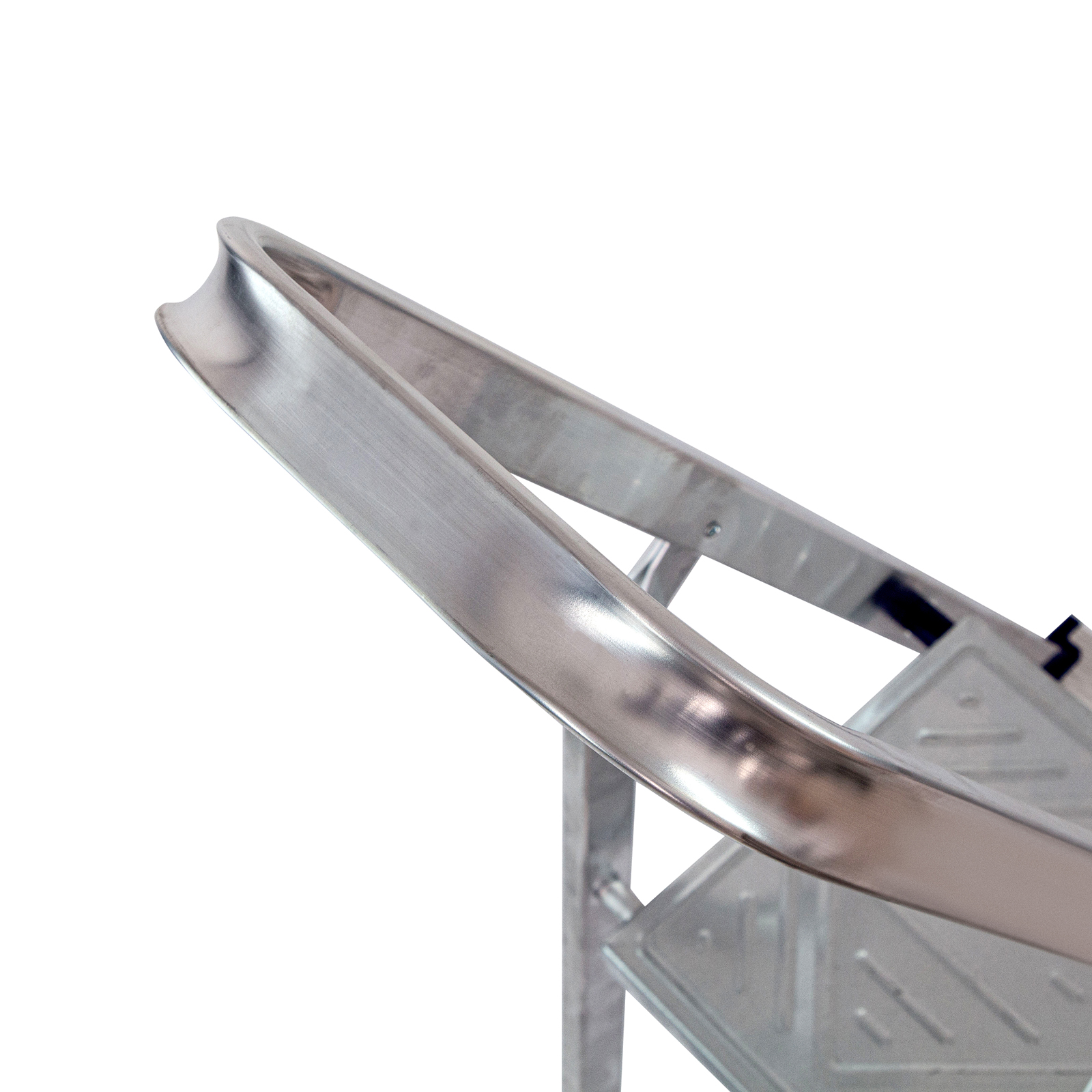 - Продуманная конструкция — стальная рабочая площадка с зацепами надежно фиксирует стремянку в разложенном положении.