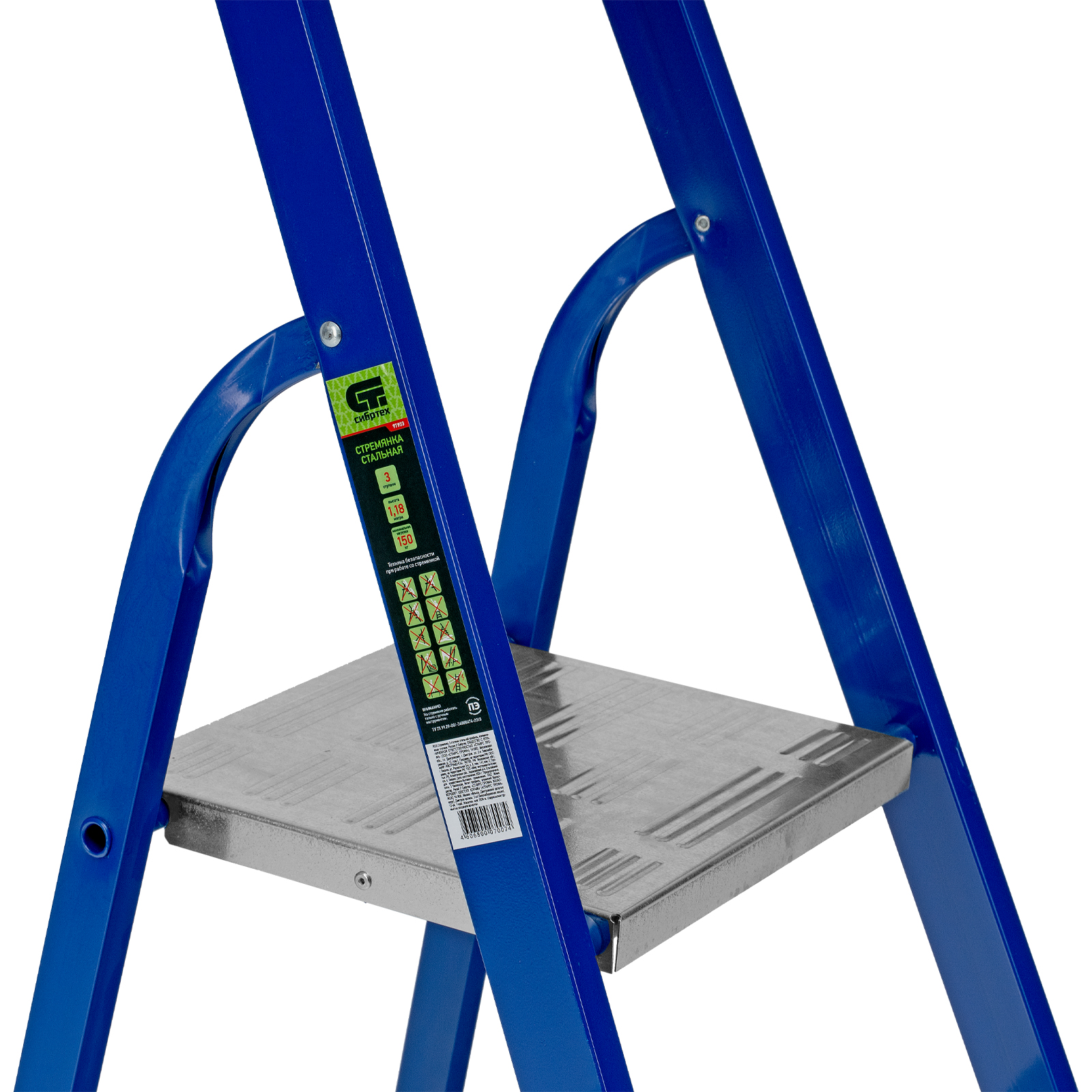 Стремянка, 3 ступени, стальной профиль, алюминиевые ступени Сибртех в Челябинске