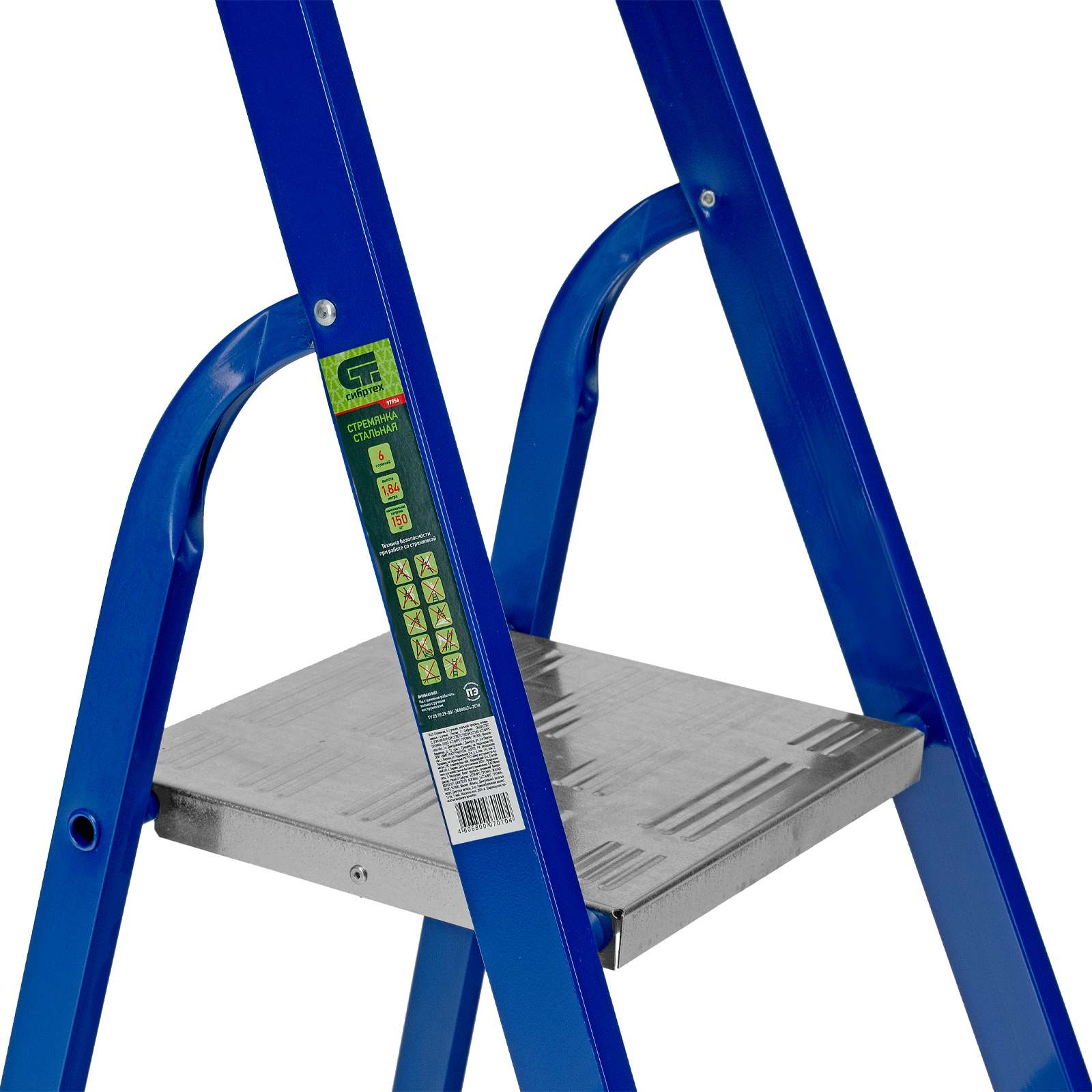Стремянка, 6 ступеней, стальной профиль, алюминиевые ступени Сибртех в Челябинске