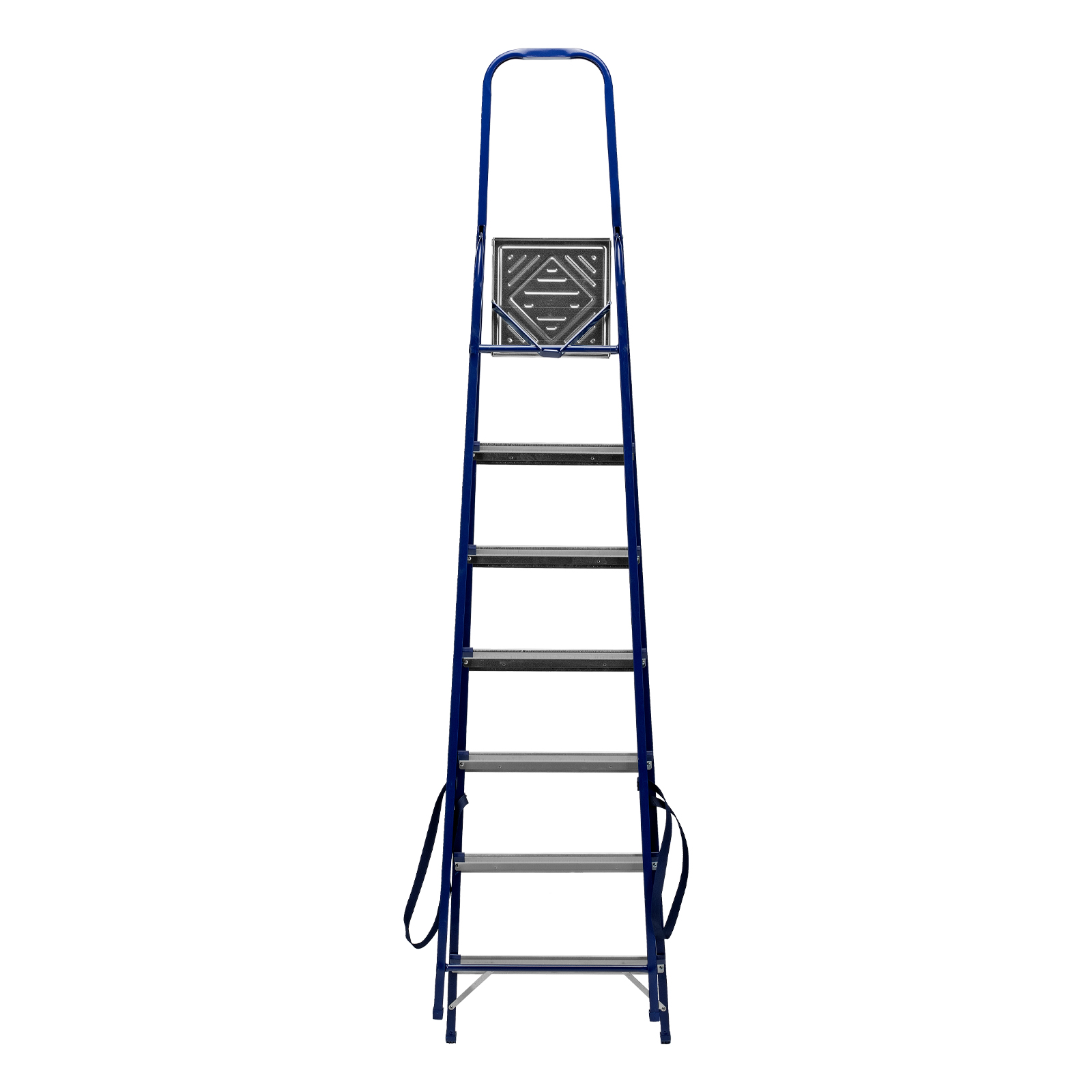 Стремянка стальная Сибртех 97847 с 7 ступенями облегчает выполнение ремонтных, отделочных, а также различных бытовых работ на высоте, превышающей человеческий рост. Площадка находится на высоте 142,5 см от опорной поверхности, рабочая высота стремянки составляет 342,5 см (при среднем росте пользователя 170 см). Высокая дуга безопасности обеспечивает удобную эксплуатацию. Стремянка пригодится дома и на даче.