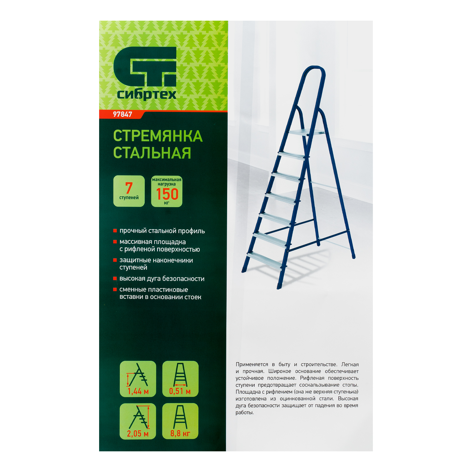 Стремянка, 7 ступеней, стальная, Сибртех в Челябинске