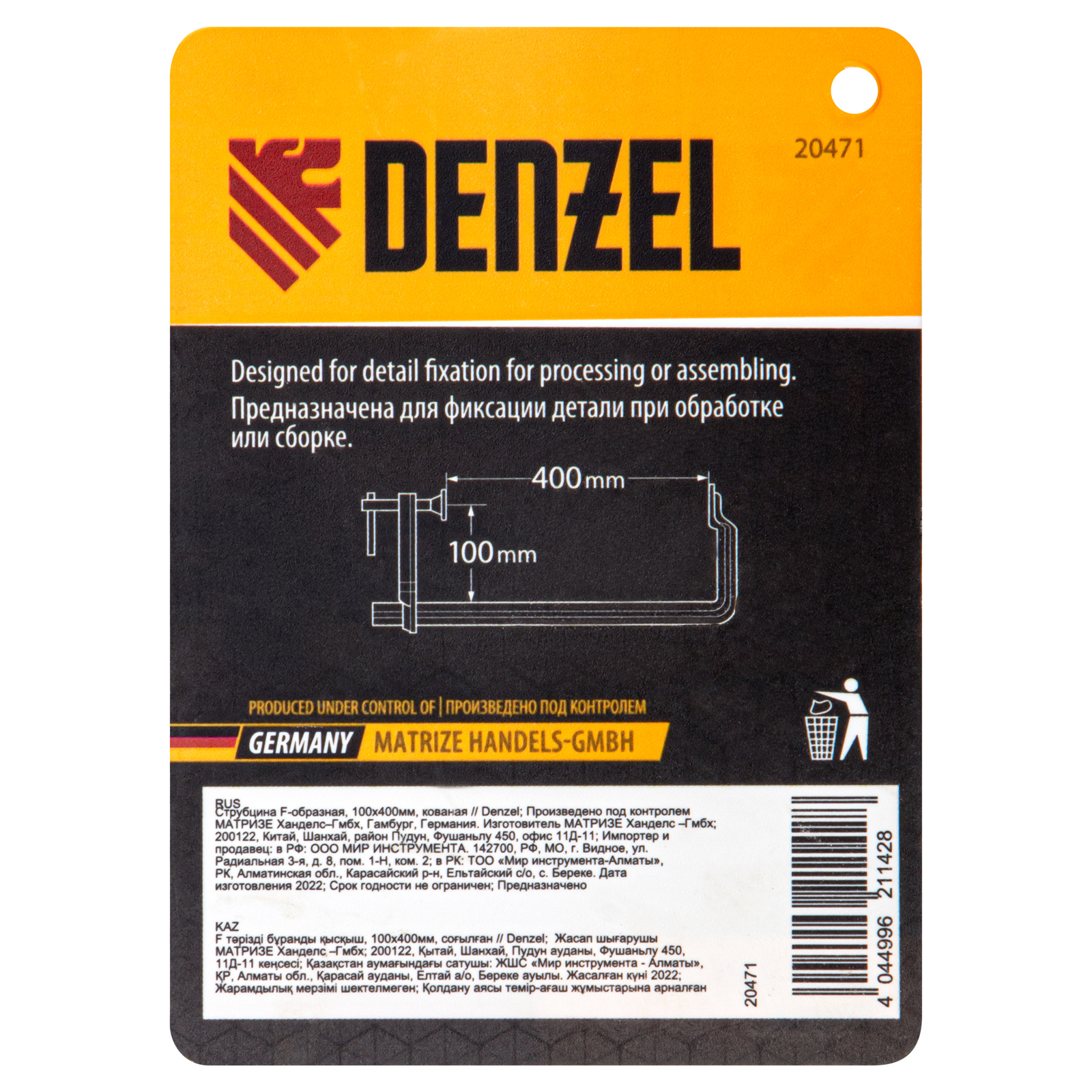 Струбцина F-образная, 100x400мм, кованая Denzel в Челябинске