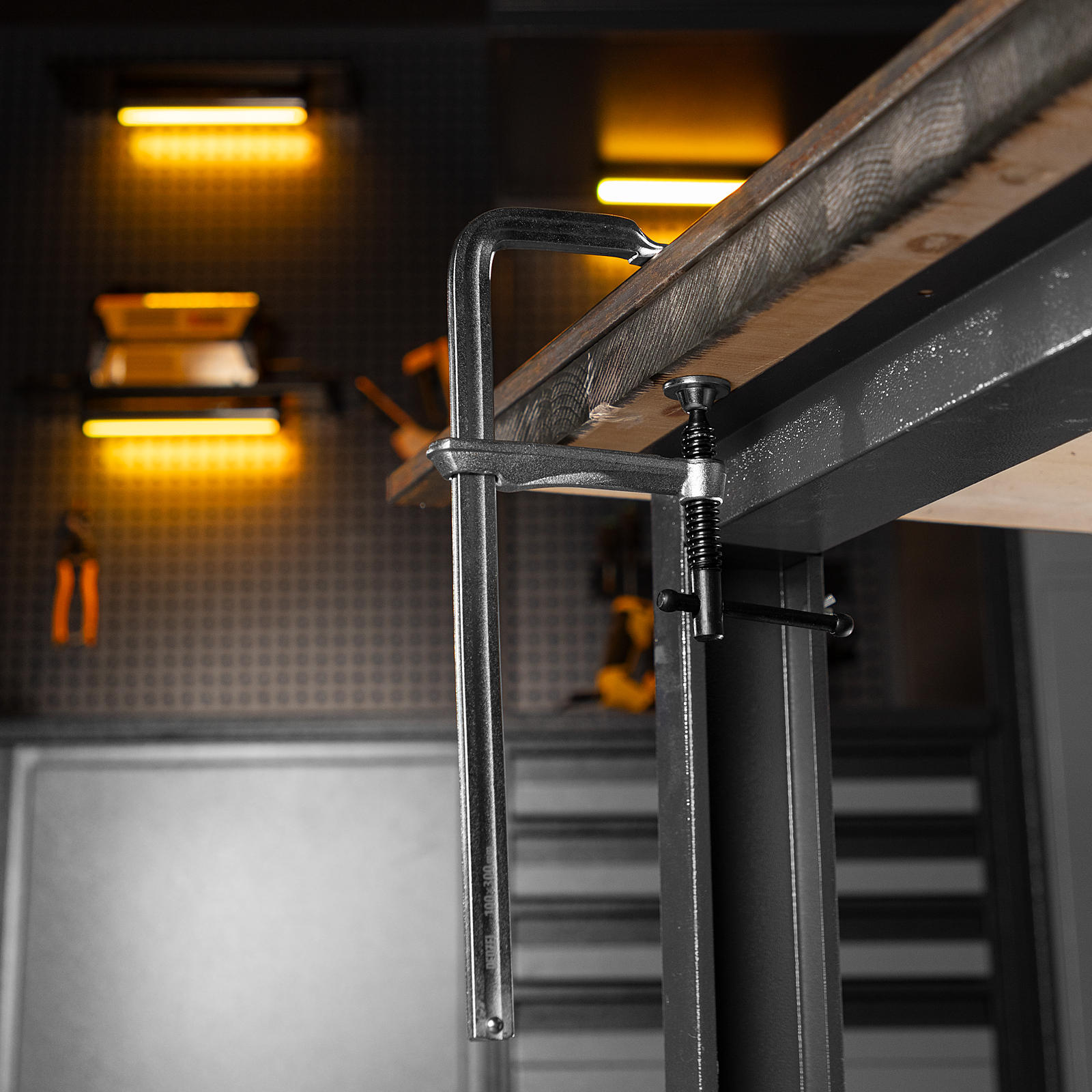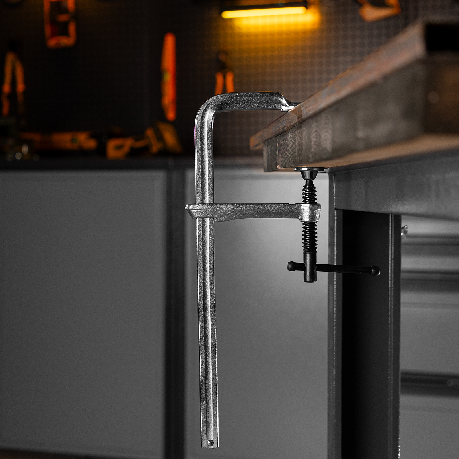 - Хромированное покрытие надежно защищает струбцину от коррозии.