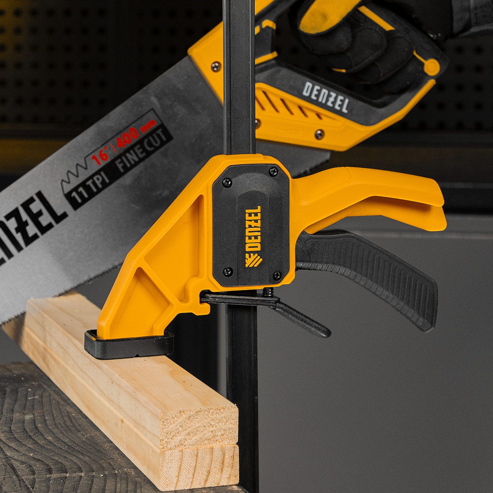 Струбцина F-образная, быстрозажимная, 450 х 80 мм, усиленный нейлоновый корпус Denzel в Челябинске