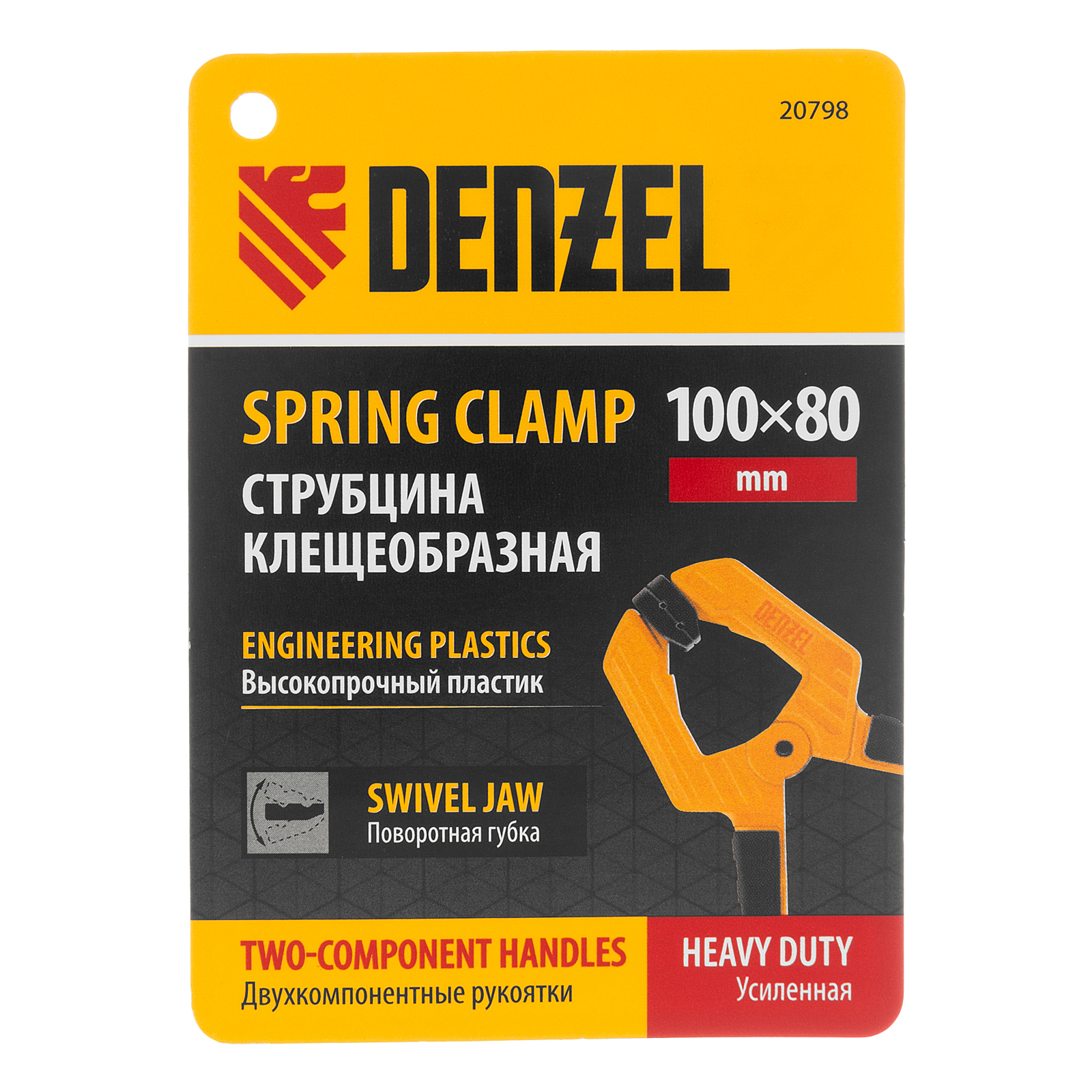 Струбцина клещеобразная, усиленная 100 х 80 мм, двухкомпонентные рукоятки Denzel в Челябинске