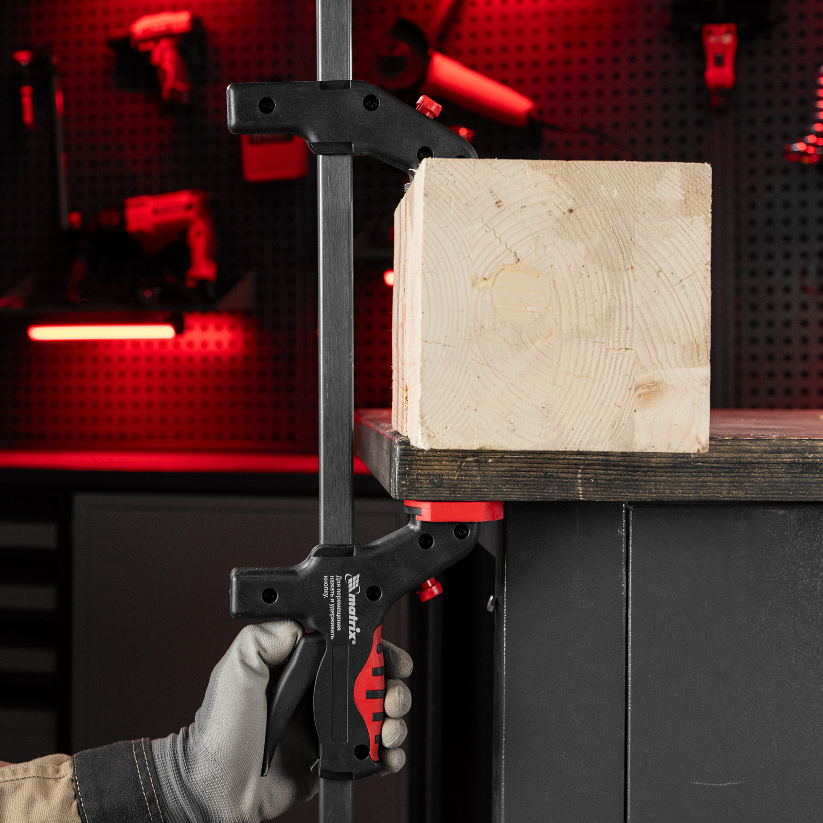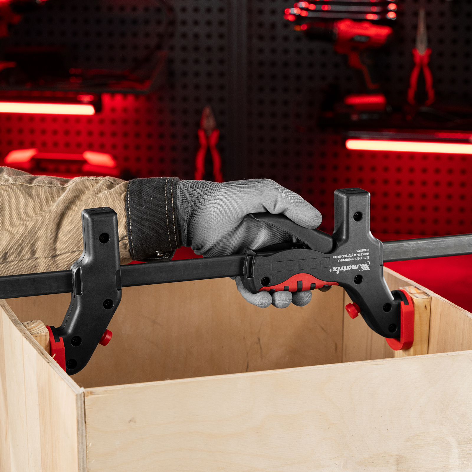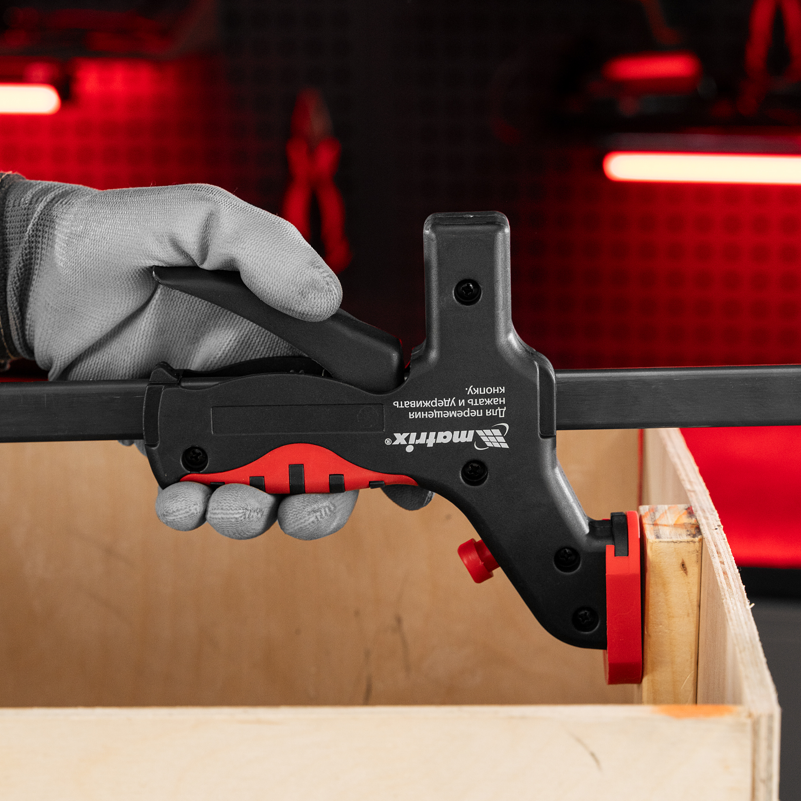 Универсальная F-образная быстрозажимная струбцина Matrix 20547 размером 760 х 1065 х 90 мм, в пластиковом корпусе, используется в столярном деле. Позволяет быстро фиксировать заготовки с целью их соединения или обработки — склеивания, сверления, шлифовки, пиления и других видов работ. Подвижная губка перемещается вдоль штанги при помощи пластинчатого механизма, а фиксатор препятствует разжиманию струбцины. Массивная конструкция обеспечивает надежность инструмента.