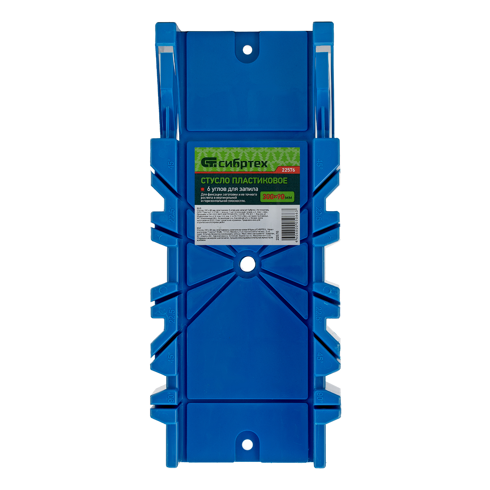 Пластиковое стусло Сибртех 22576, 300 х 90 мм, с 6 углами для запила, — это незаменимое приспособление при проведении столярных работ. Пригодится для реза заготовок размером до 90 х 60 мм. Благодаря стуслу можно работать под фиксированным углом 22,5/45//90/135 градусов в вертикальной плоскости и под углом 45 градусов в горизонтальной.