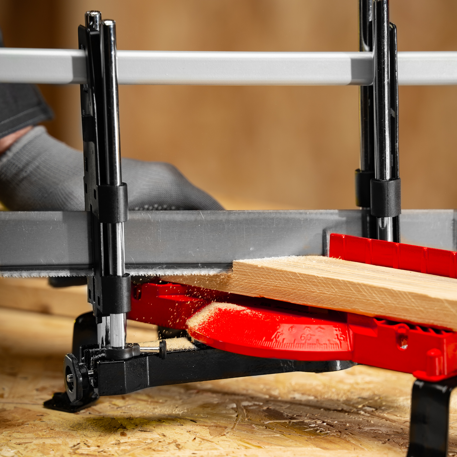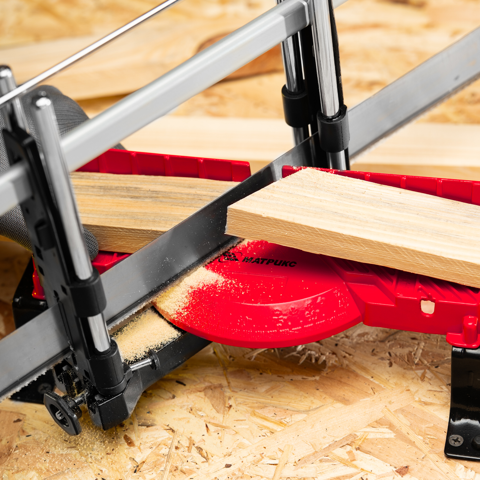 - Быстрый выбор угла распила — на корпус нанесена градусная шкала.