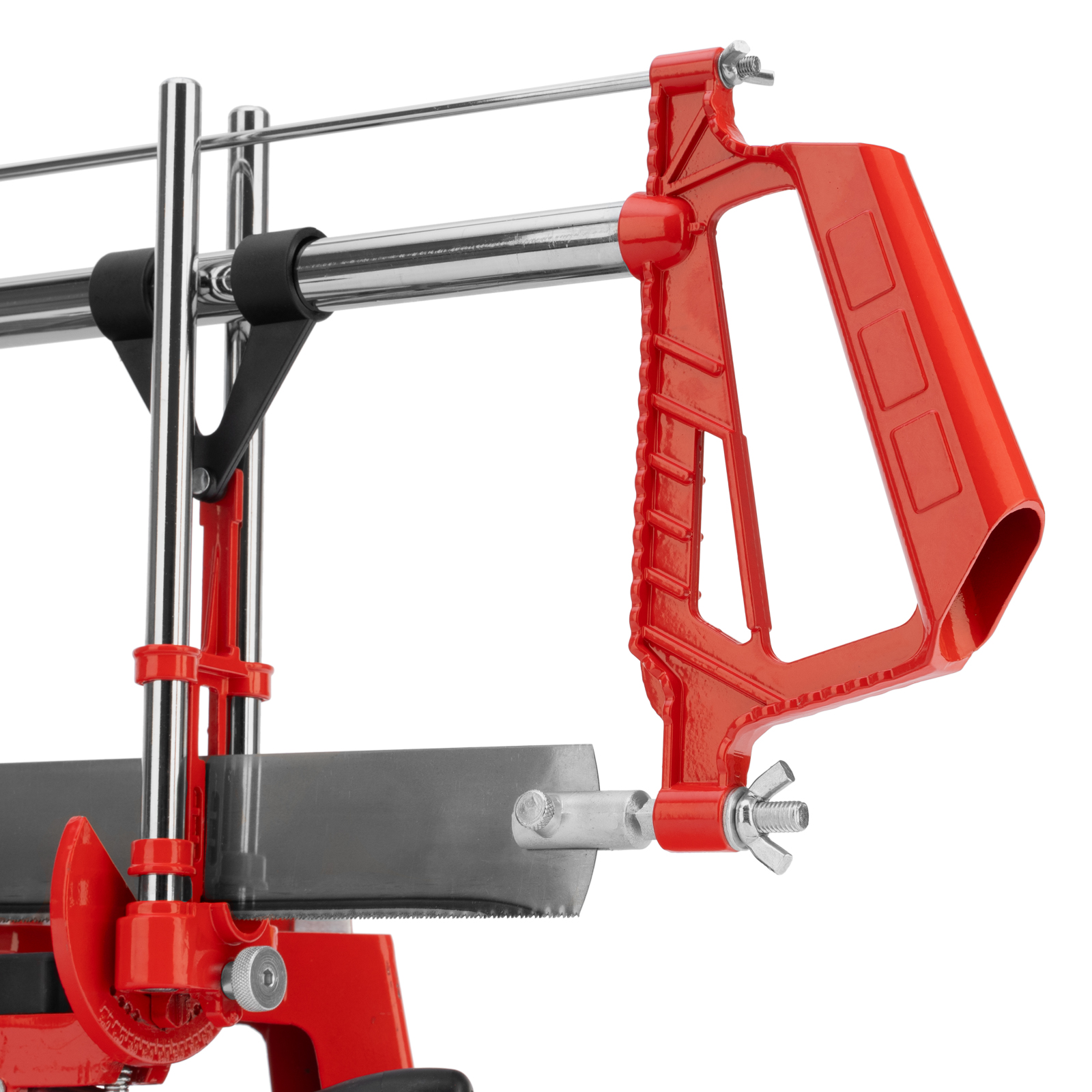 - Прочность и долговечность — стусло и рукоятка выполнены из стойкого к коррозии алюминиевого сплава, рамная конструкция пилы обладает необходимой жесткостью.