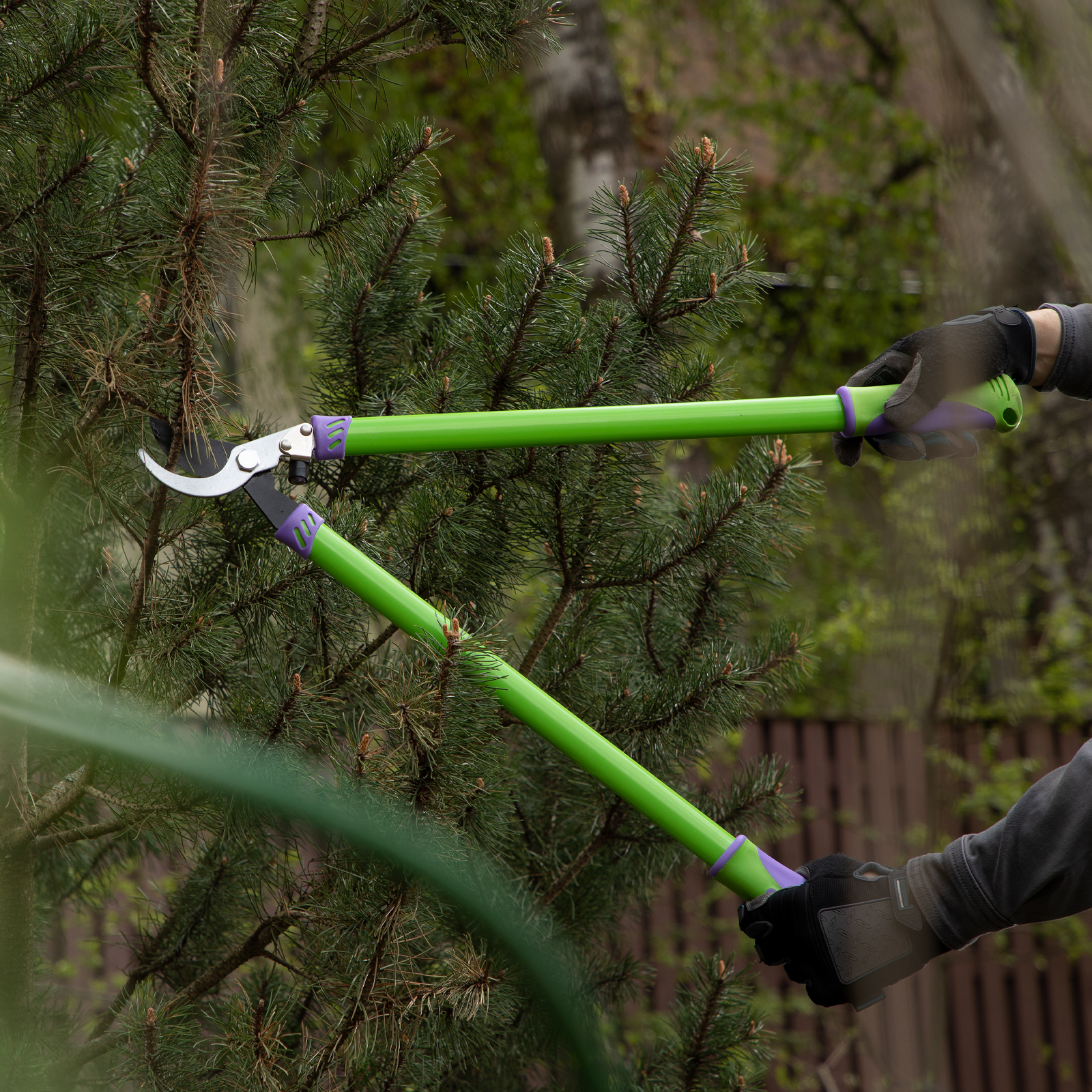 Сучкорез прямого реза Palisad 60506 длиной 700 мм, с двухкомпонентными рукоятками, — инструмент для срезания живых веток толщиной не более 25 мм. Используется для работы двумя руками, удобен для обрезки высоко растущих, а также очень жестких веток. Рабочее лезвие легко срезает ветви благодаря прецизионной заточке и тефлоновому покрытию, которое дополнительно обеспечивает надежную защиту от коррозии. Сучкорез будет полезен для ухода за садом и огородом.