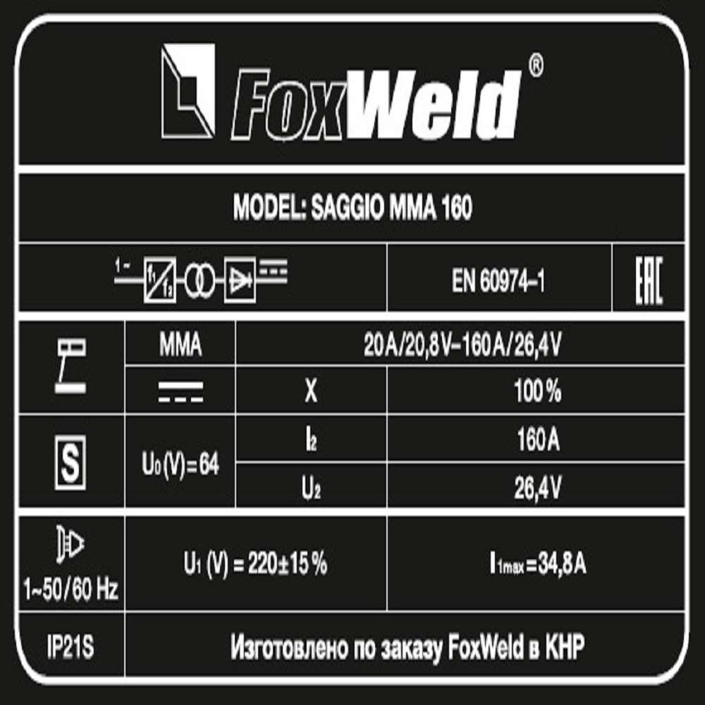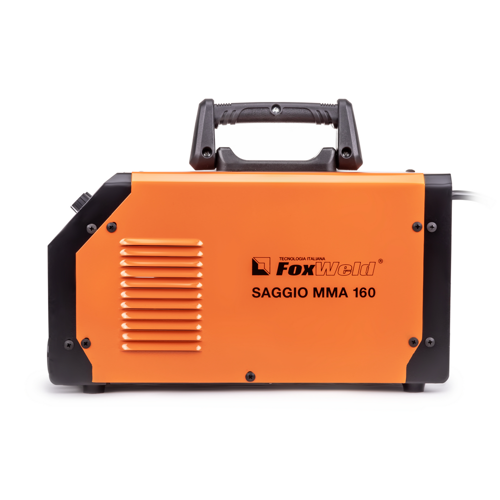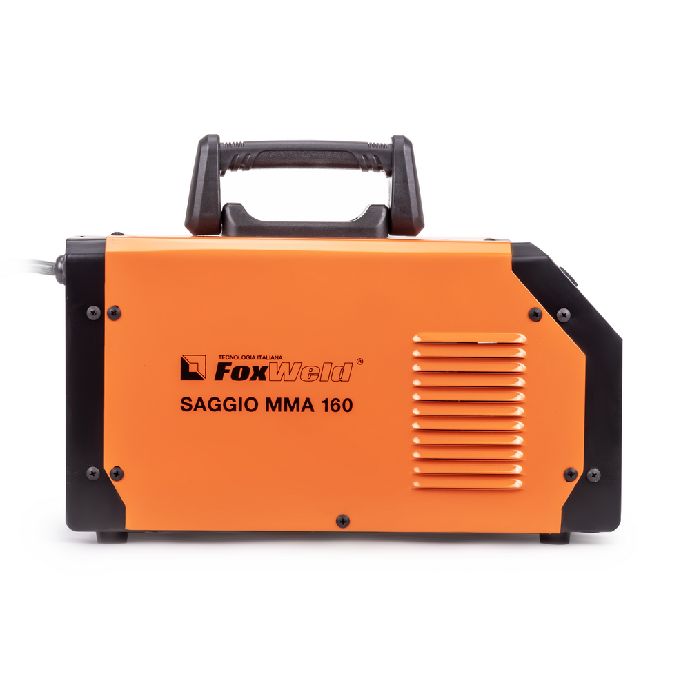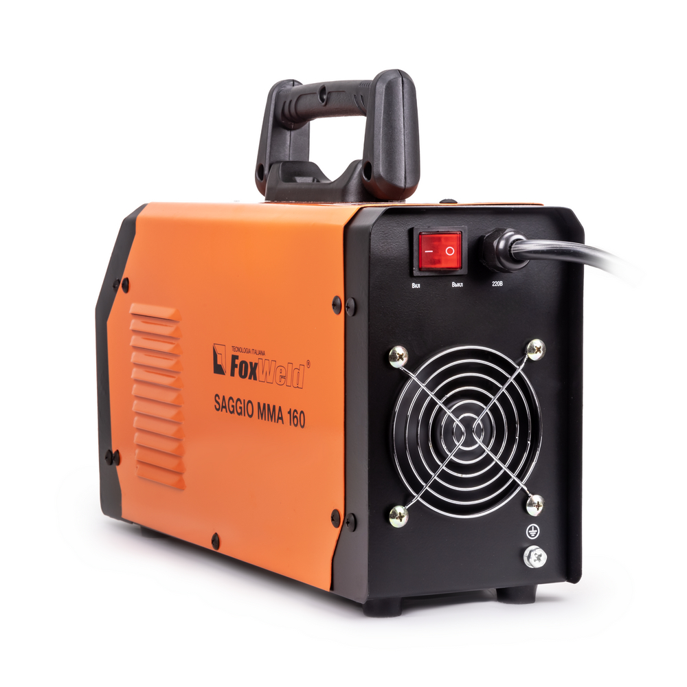Сварочный аппарат FOXWELD SAGGIO MMA 160 разработан для профессионалов, главные особенности - мощность, надёжность, компактность. Улучшенная схема стабилизации сварочного процесса даёт хороший поджиг и «мягкую» сварочную дугу с минимальным разбрызгиванием. Для облегчения процесса сварки в режиме ММА и получения более качественного сварного соединения, аппарат имеет встроенные функции: Hot Start (горячий старт), AntiSticking (антизалипание) и Arc Force (форсаж дуги) с возможностью регулировки. Регулировка функции Arc-Force позволяет стабилизировать процесс горения дуги на разных значениях сварочного тока, препятствуя привариванию электрода к детали. Это способствует получению стабильно надежного соединения при использовании электродов с разными типами покрытия для сварки различных материалов. Система защиты от перегрева гарантирует остановку работы сварочного аппарата при выходе из строя вентилятора. Время продолжительности работы (ПВ) составляет 100%, что важно при эксплуатации на строительных объектах и на производстве.РАБОТА БЕЗ ОСТАНОВКИ: Параметр ПВ 100% на максимальном токе при КПД 85% обеспечивает бесперебойную устойчивую работу сварочного аппарата в течении всего рабочего дня. Это позволяет производить безостановочный сварочный процесс и выполнять работы, которые требуют больших временных затрат, что повышает скорость и производительность.РЕГУЛИРУЕМАЯ ФУНКЦИЯ ФОРСАЖ ДУГИ: Функция «Форсаж дуги» (Arc Force) позволяет не чувствовать изменения тока при сварке неровных поверхностей, так как благодаря ней, аппарат "форсирует" ток и снижает вероятность залипания электрода. Регулировка форсажа дуги позволяет изменять вручную напряжение в процессе сварки. Это даёт возможность компенсировать потери сварочного напряжения, например, из-за слишком длинного кабеля. Также с помощью ручной регулировки можно усилить сварной шов, изменить его форму – сделать более пологим или повысить растекаемость.РАБОТА ПРИ ПОНИЖЕННОМ НАПРЯЖЕНИИ: Аппарат работает от однофазной сети 220 В при перепадах напряжения от 140 до 270 В. Это даёт возможность производить сварочные работы в «плохих» сетях – на даче, в домашних условиях при пониженном или нестабильном напряжении.НЕБОЛЬШОЙ ВЕС: Небольшой вес и размеры сварочного аппарата плюс удобная ручка и ремень для переноски добавляют мобильности, компактности и идеально подходят для бытового и полупрофессионального использования.РАСШИРЕННАЯ КОМПЛЕКТАЦИЯ: Электрододержатель с кабелем, зажим для заземления, щиток сварщика и щётка в комплекте позволяют быстро приступить к работе.ПРЕИМУЩЕСТВА:Цифровой дисплейПлавная регулировкаВстроенная термозащитаНизкое энергопотреблениеПринудительное охлаждениеПолный комплект для начала работЛёгкий поджиг (Hot Start)Стабилизация процесса (Arc Force)Антиприваривание (Anti-Sticking)Мощность, надёжность, компактностьУлучшенные характеристикиРаботает при пониженном напряженииФУНКЦИОНАЛЬНЫЕ ОСОБЕННОСТИ:РЕЖИМ MMA: Работает с входным напряжением от 140 до 270 вольт;Может работать с диаметром покрытого электрода до 4 мм;Выставляется ток сварки от 20 до 160 ампер;Для облегчения процесса сварки присутствуют функции: Hot Start, Arc Force и AntistickingКОМПЛЕКТАЦИЯ: Сварочный аппарат FOXWELD SAGGIO MMA 160 – 1 шт.; Электрододержатель с кабелем 1,5 м – 1 компл.; Зажим на массу с кабелем 1,5 м – 1 компл.; Щиток сварщика – 1 шт.; Щётка – 1 