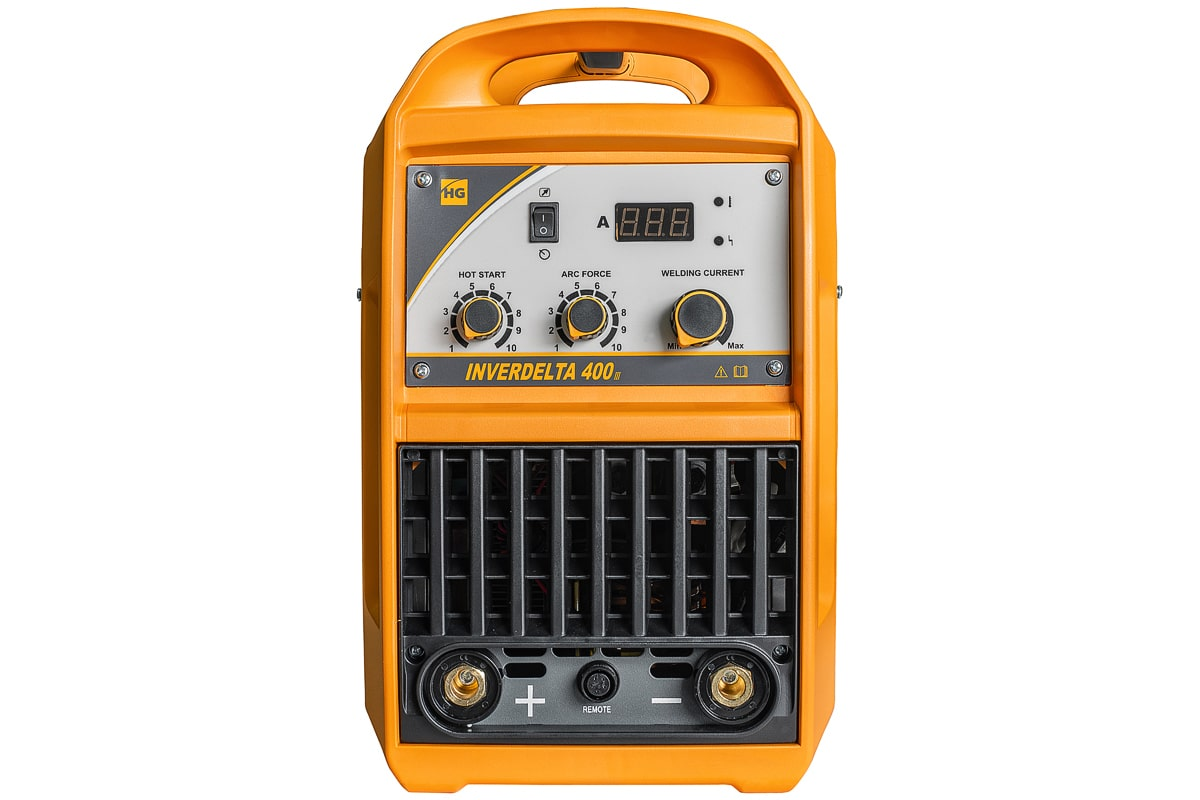 Переносной аппарат для ручной дуговой сварки и наплавки штучным покрытым электродом (MMA). Расширенный набор настроек. Максимальный сварочный ток 400 А. Входное напряжение 380В.