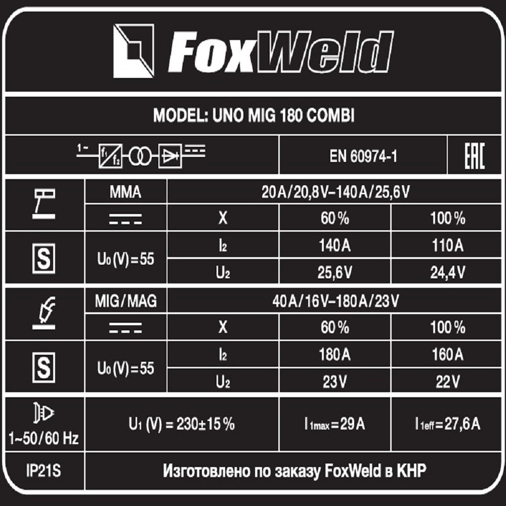 Сварочный полуавтомат UNO MIG 180 COMBI