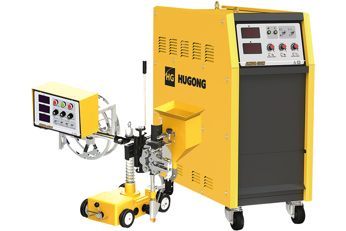 Промышленный многофункциональный сварочный аппарат для автоматической сварки под флюсом (SAW) с функцией ручной дуговой сварки покрытым электродом (ММА) и воздушно-дуговой строжки (Googing). Источник сварочного тока в составе аппарата обеспечивает сварочные процессы с жесткой ВАХ «CV» (Constant Voltage) и падающей ВАХ «СС» (Constant Current) при 100% ПВ с током сварки до 1 000 А. Возможно выполнение сварных изделий из всех видов стали с толщинами от 3 до 350 мм.