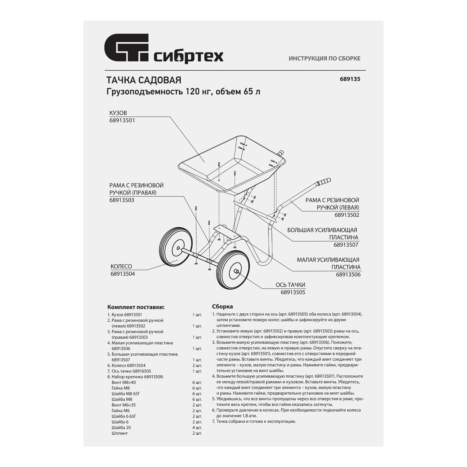 Двухколесная садовая тачка Сибртех 689135 грузоподъемностью 120 кг, с объемом кузова 65 л, служит для транспортировки легких грузов при выполнении садовых и сельскохозяйственных работ. С ее помощью можно привести в порядок территорию и убрать листья, собрать урожай и выполнить другие работы на загородном участке. Два колеса обеспечивают высокую грузоподъемность, а также устойчивость во время движения по прямой и на поворотах. Вес груза распределяется равномерно, поэтому тачка не проваливается даже в рыхлый грунт.