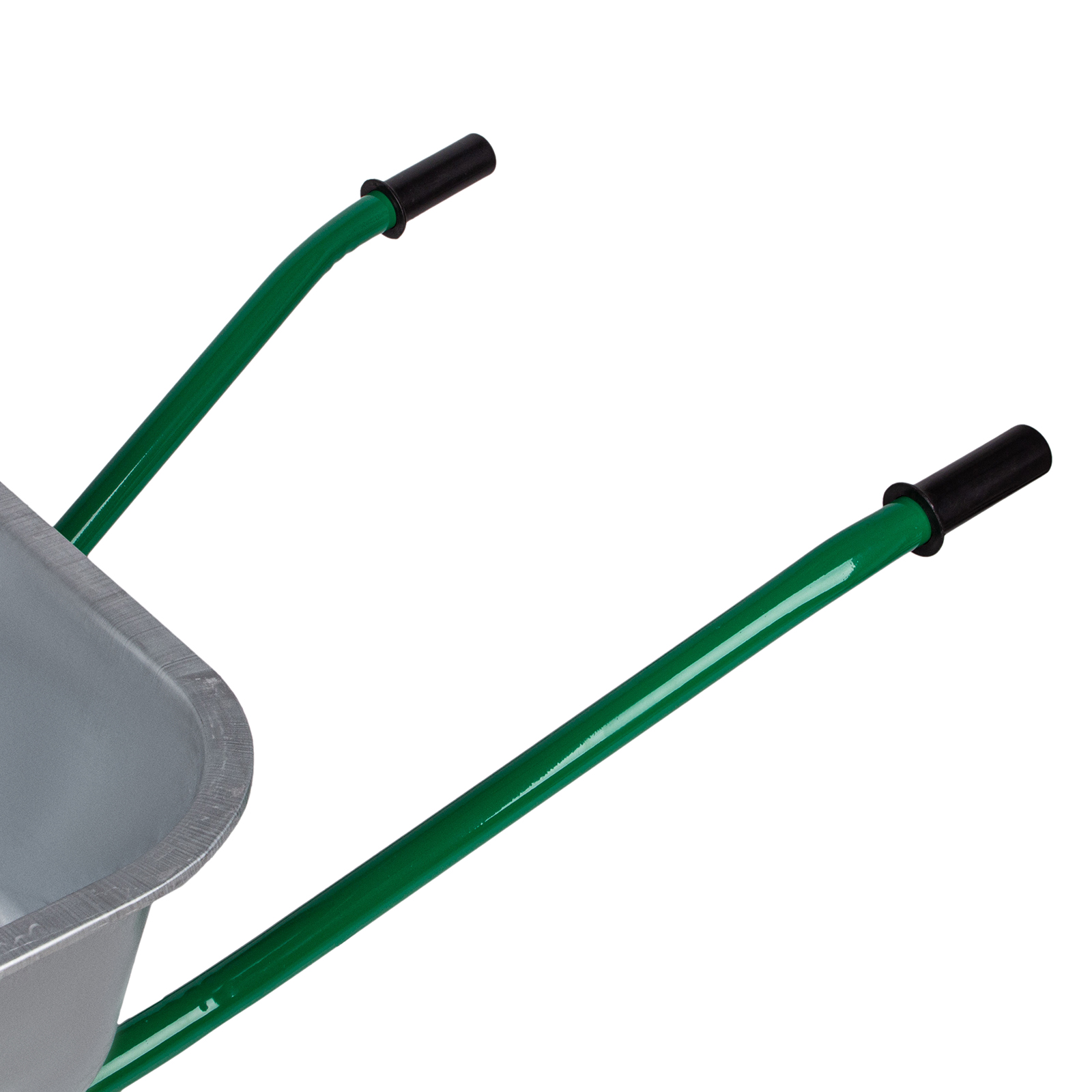 - Увеличенная грузоподъемность — переднюю часть кузова поддерживает дополнительная опора, поэтому тачка выдерживает грузы массой до 320 кг.