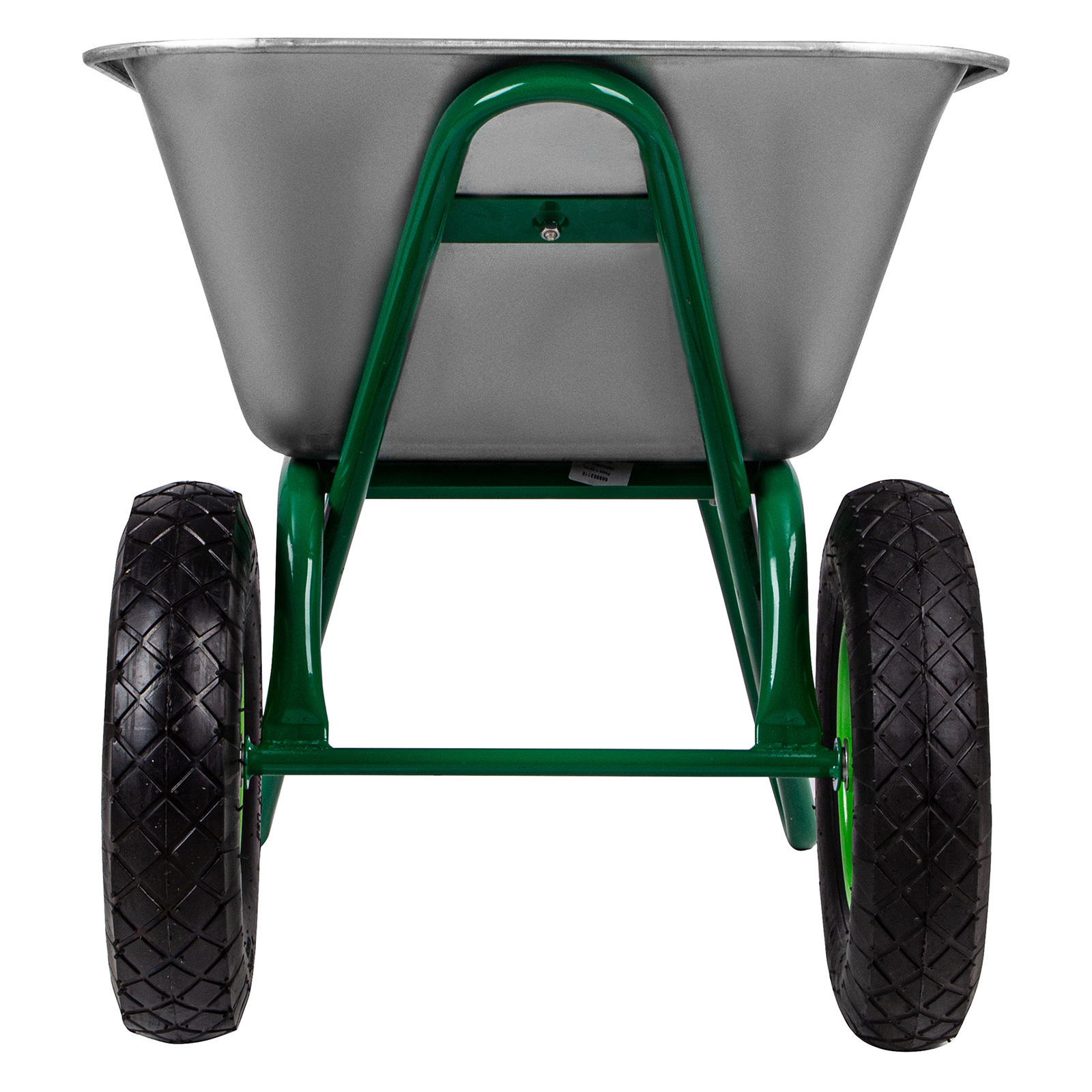 Усиленная садово-строительная тачка 689863, 2-колесная, грузоподъемностью 320 кг и объемом корыта 100 л, будет полезна во время строительства или ухода за дачным участком. Ее используют для перемещения мусора, веток, листьев, грунта, щебня, песка, а также строительных смесей. Необходимая грузоподъемность достигается благодаря стальной раме с толщиной стенок 1,2 мм и кузову со стенками толщиной 0,7 мм. 2 колеса увеличивают устойчивость тачки. Шарикоподшипники облегчают вращение колес, поэтому тачку легко перемещать по неровной поверхности.